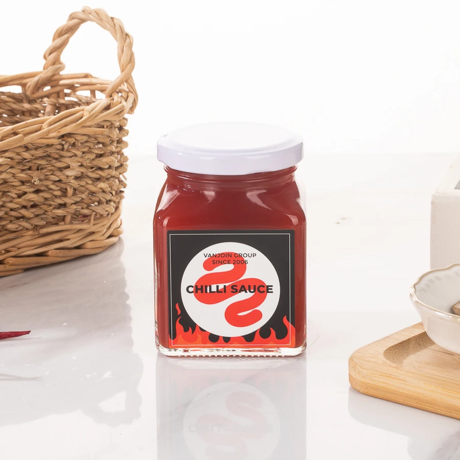 Chili Oil Sauce Jar Glass Customized Label Logo Printed tomato sauce jar 6oz With Metal White lids Gold Black