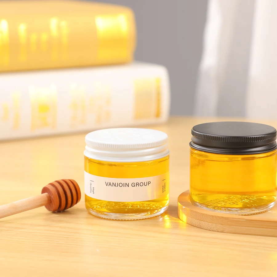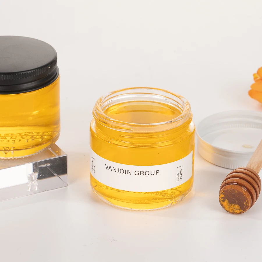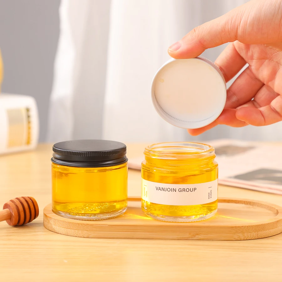 Name | Custom 60ml 2oz Straight Side Clear Glass Honey Jars Food Container With Metal Lid Honey Jam Round Food Grade Glass Jars |