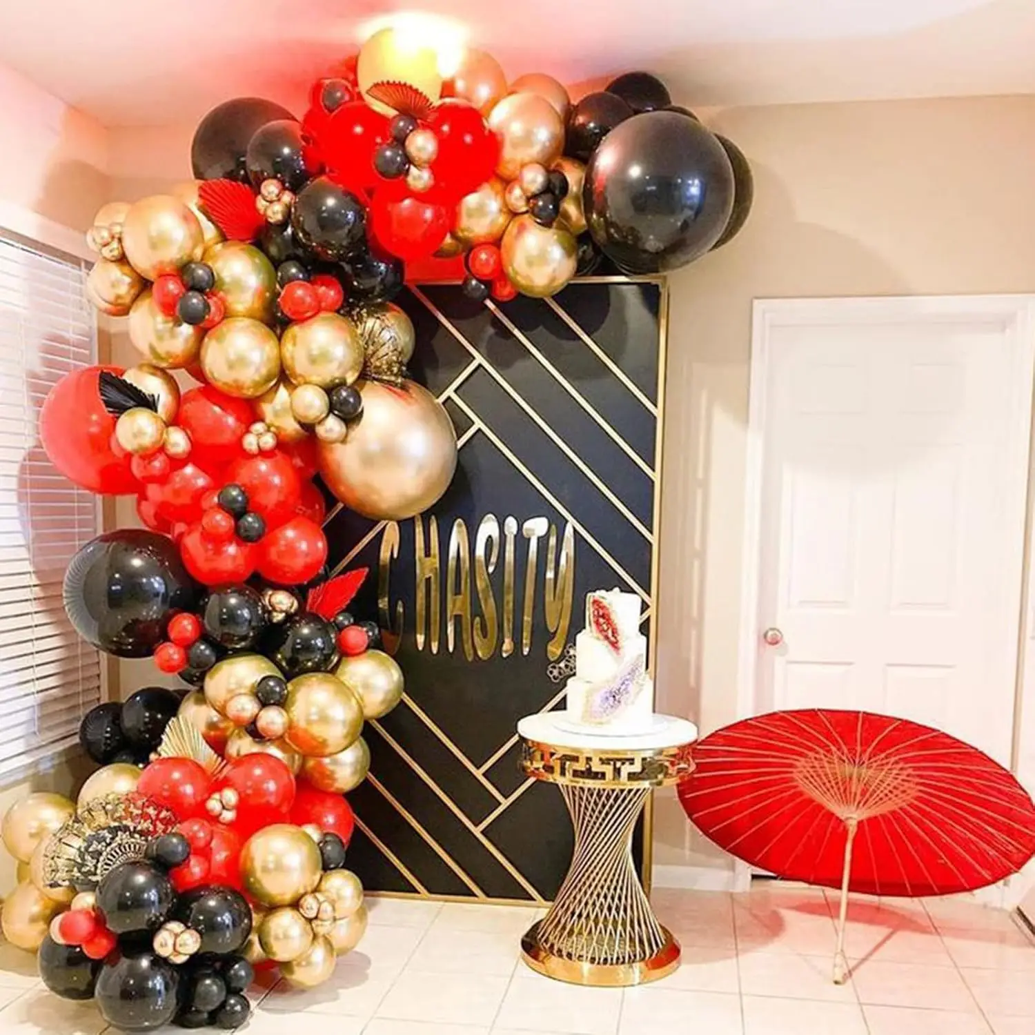 PartyWoo Red Black Gold Balloons Red Black and Chrome Gold Balloons 18Inch 12Inch 10Inch 5Inch for Birthday Party Decorations