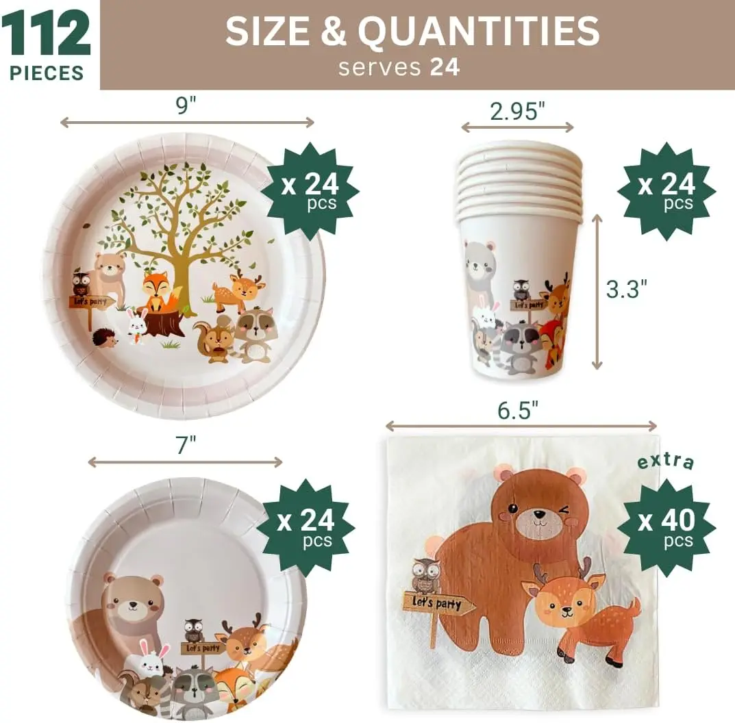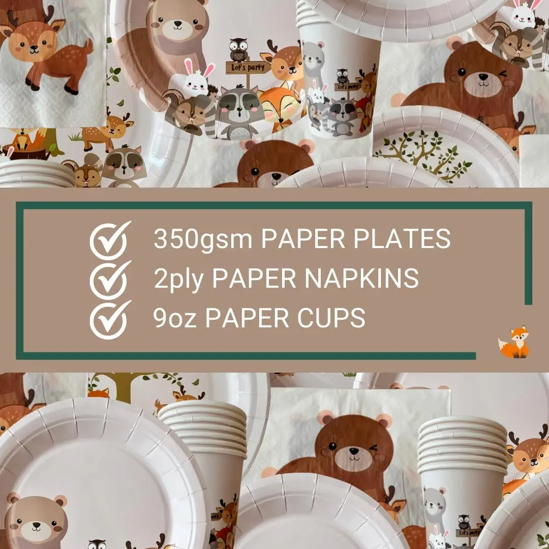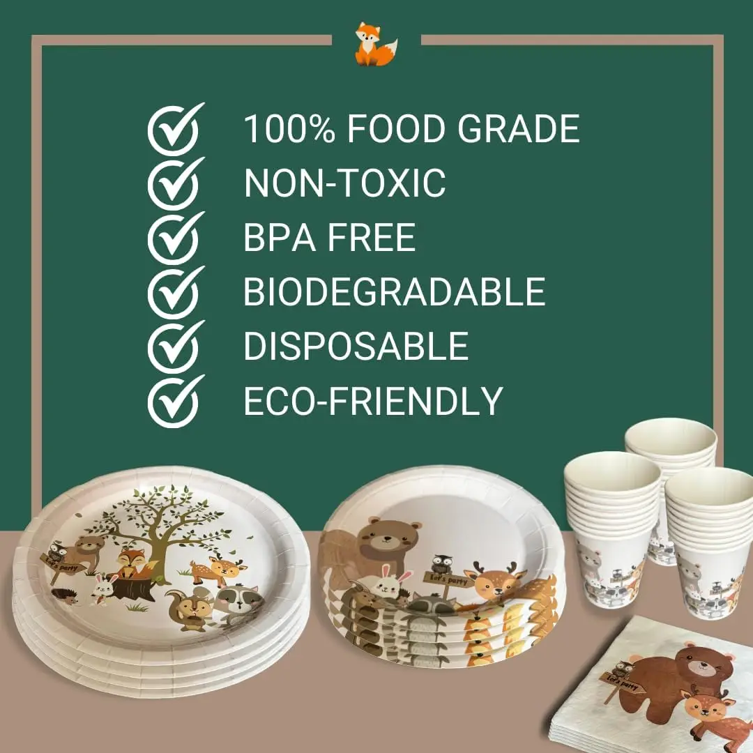 New Animals Birthday Party Tableware Set Disposable Paper Plates And Cups T Cats Tableware Decorations Customized