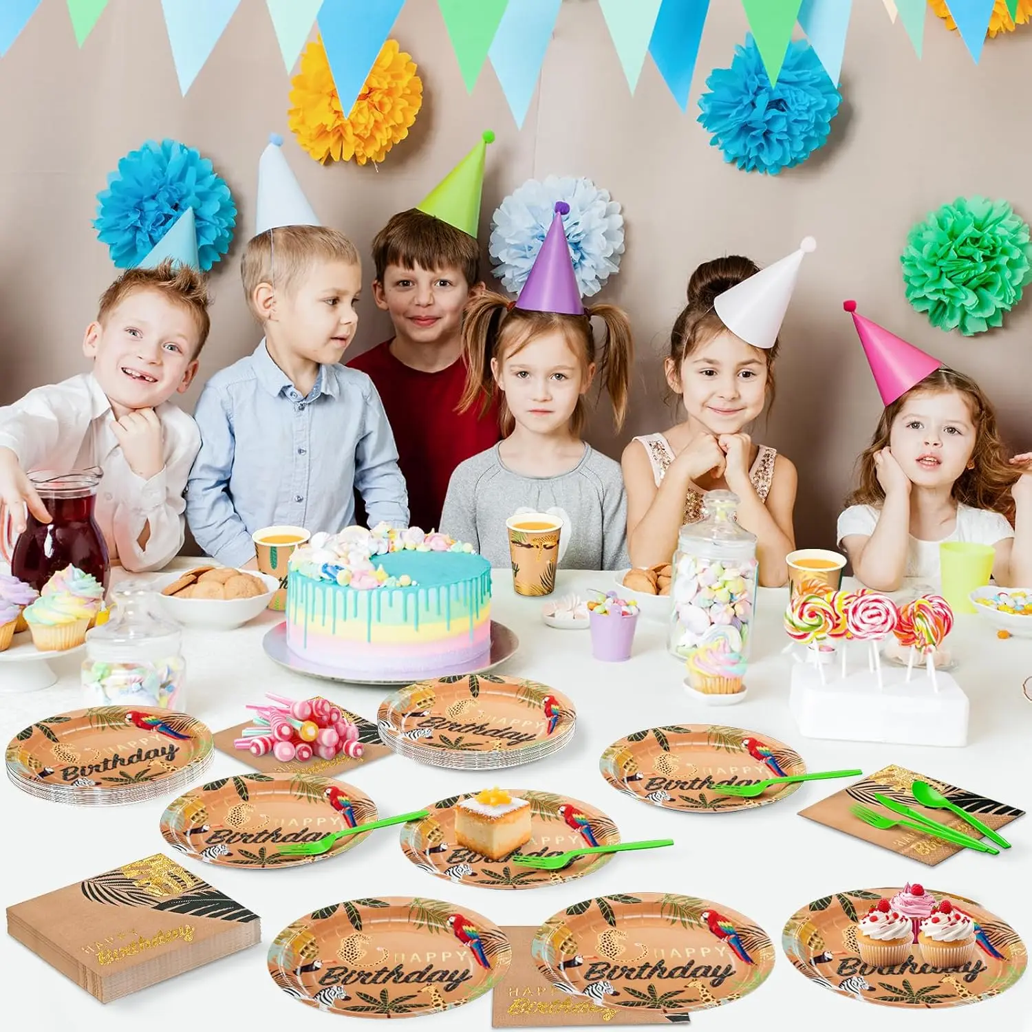 Customized Original Jungle Birthday Party Tableware Set Disposable Paper Plates And Cups T Animals Tableware Decorations