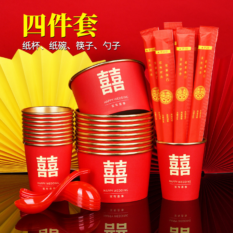 [four-piece set of gold foil for wedding suit] cup + bowl + chopsticks + spoon for 10 people