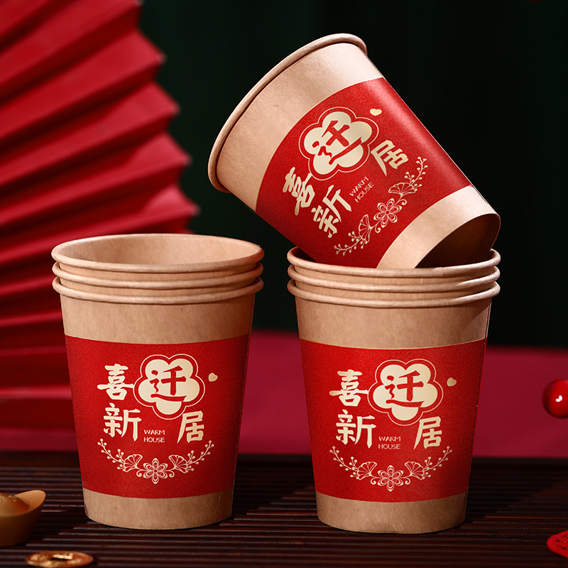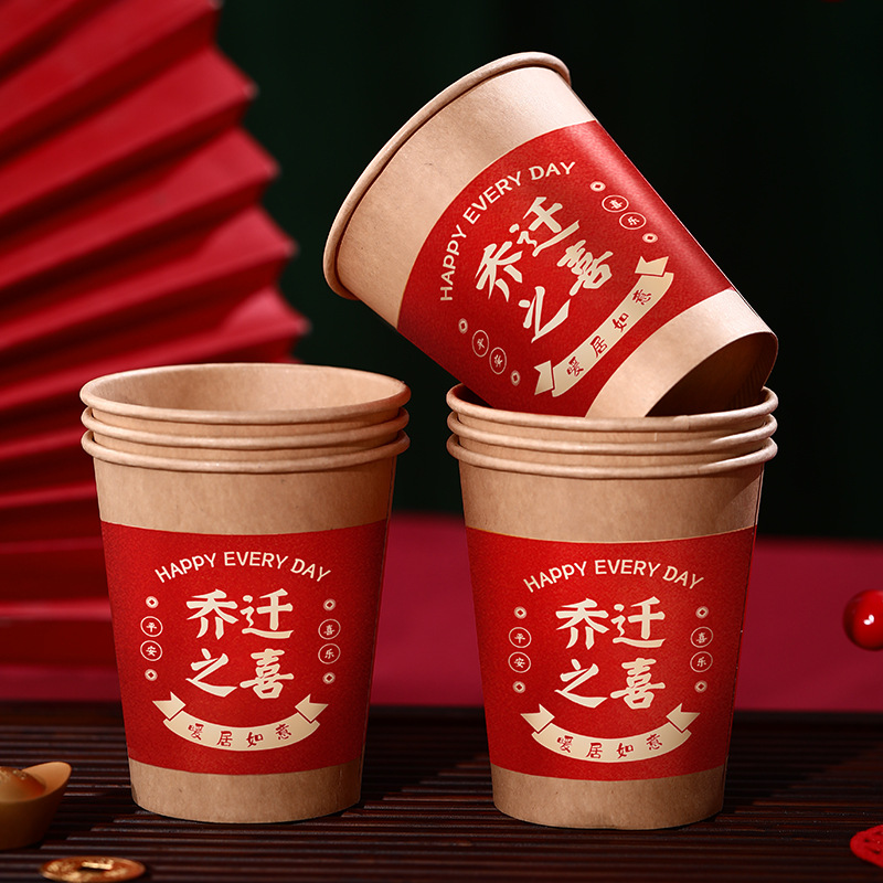 thickened primary color (housewarming happiness) 100 pieces; housewarming paper cups heat insulation and pressure resistance without leakage
