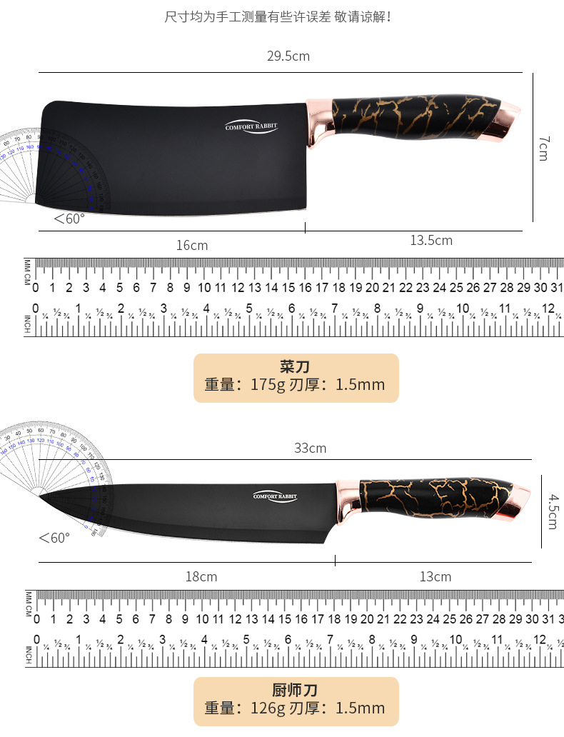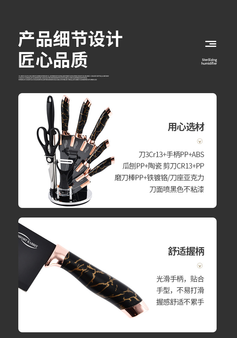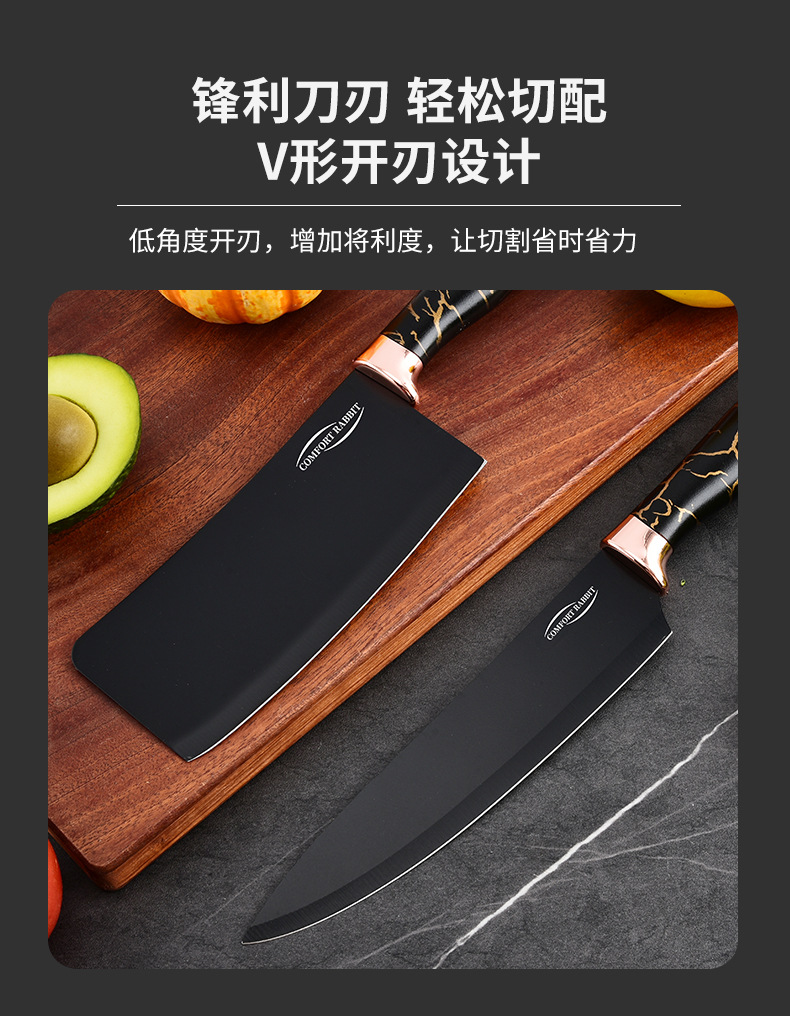 9-piece kitchen knife set (black dali pattern)