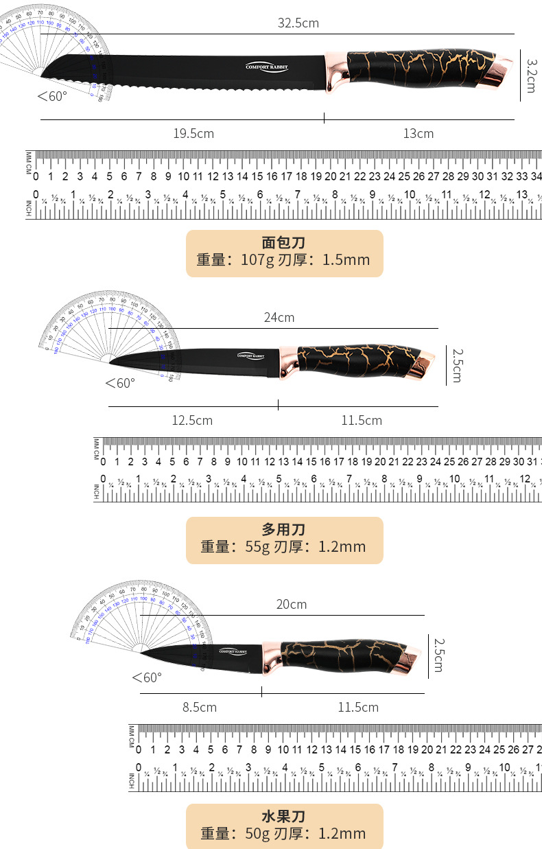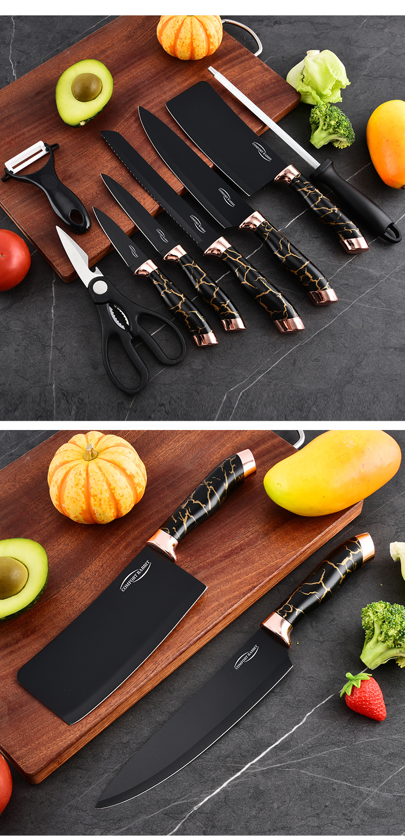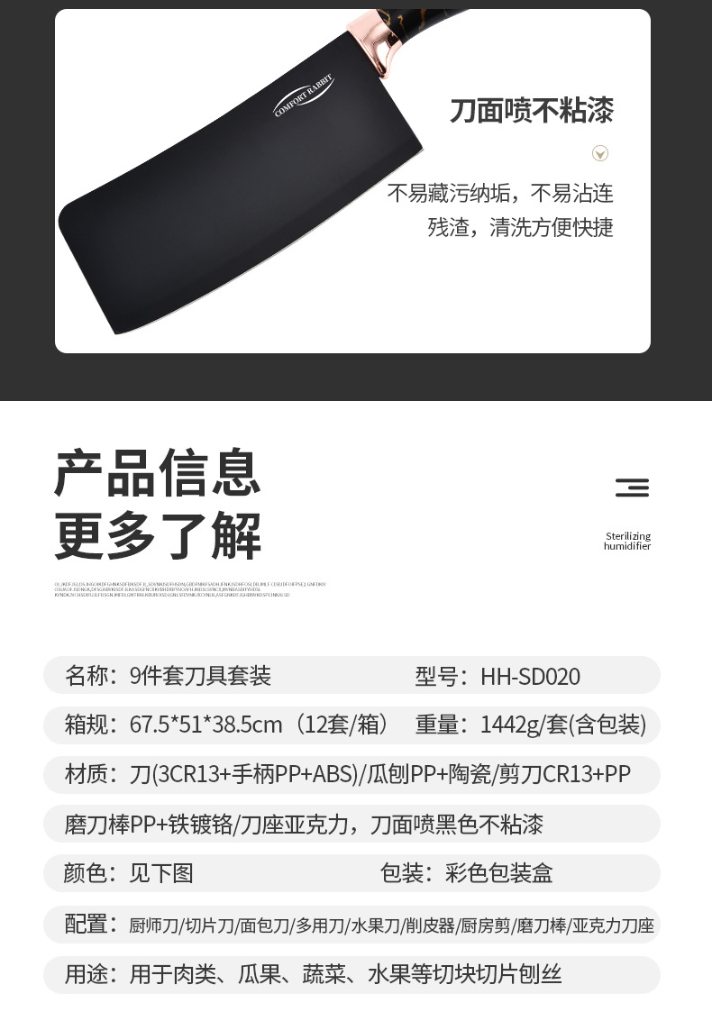 9-piece kitchen knife set (gray pattern)