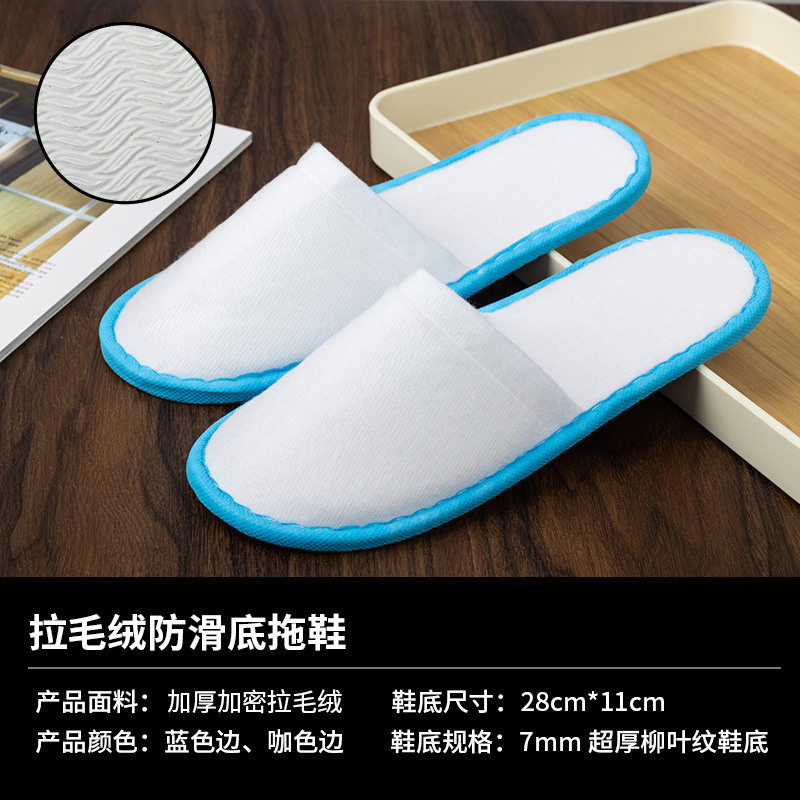 sky blue strip coral velvet slippers