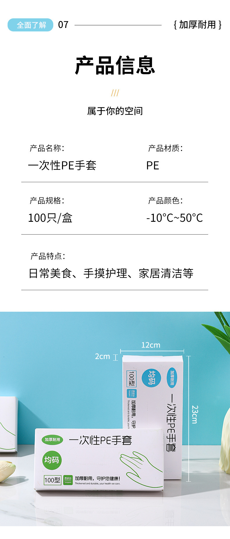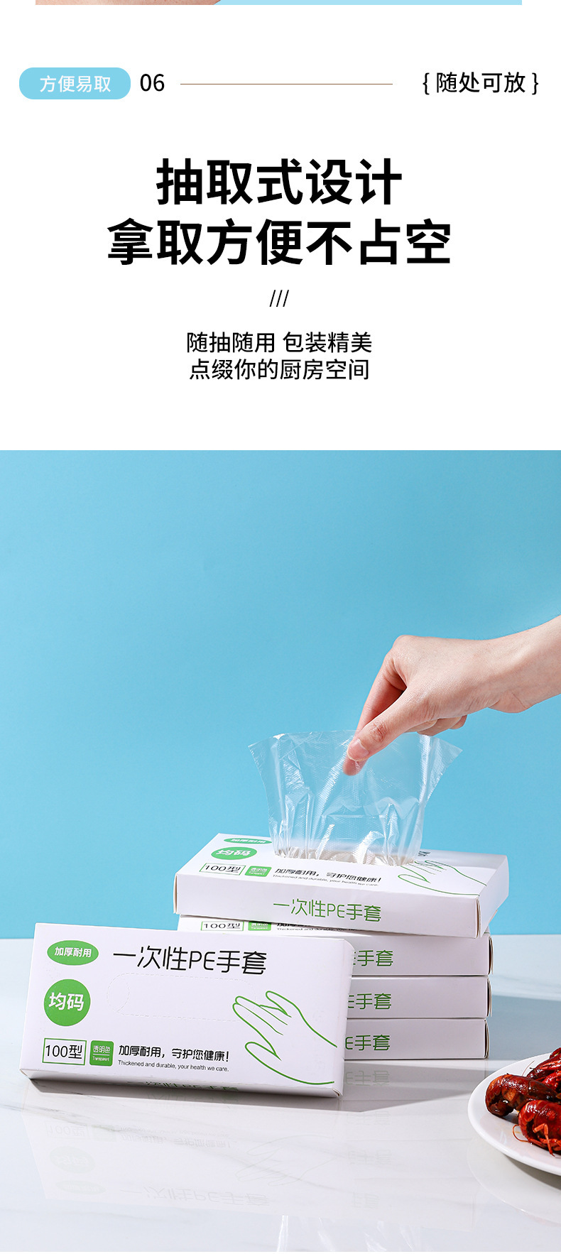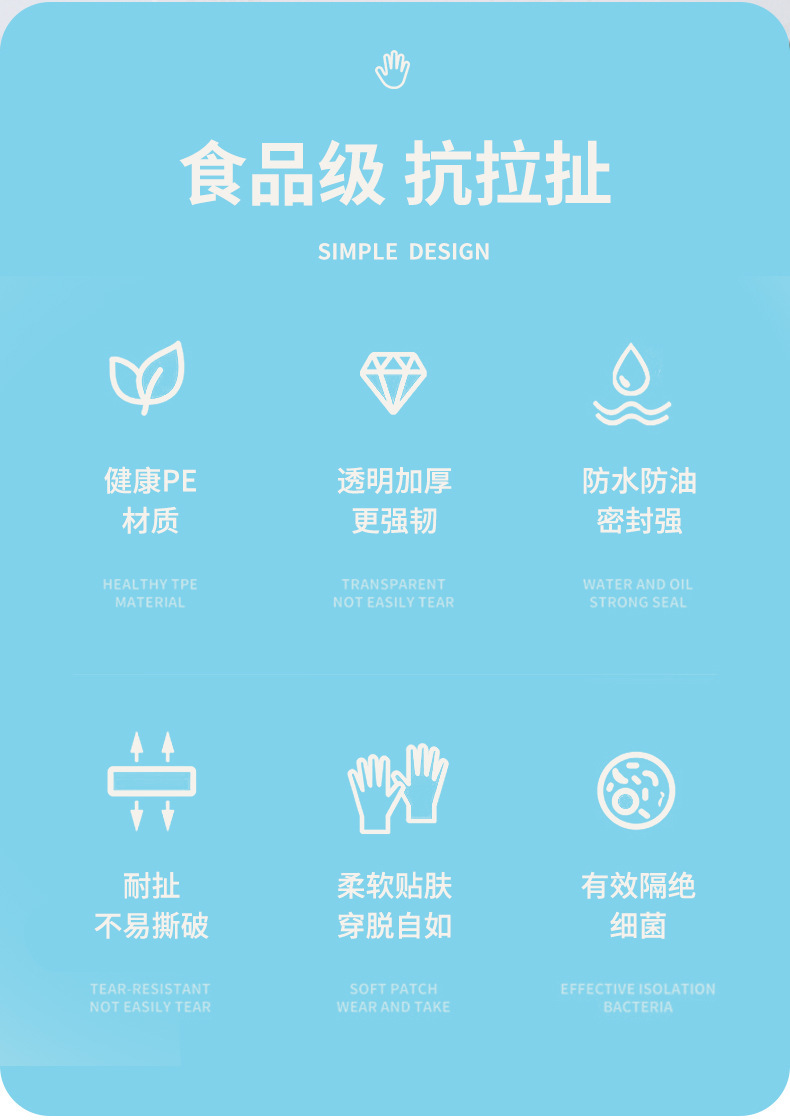 disposable pe gloves free size blue