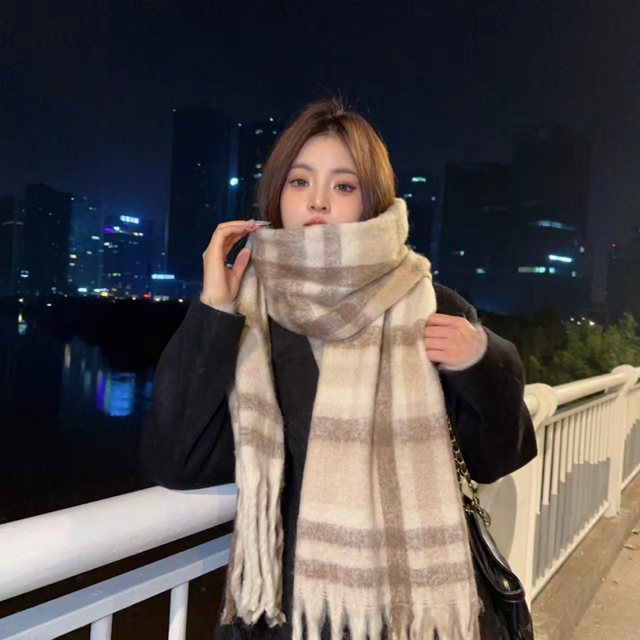 yu shuxin same style [pink brown grid 280g]]