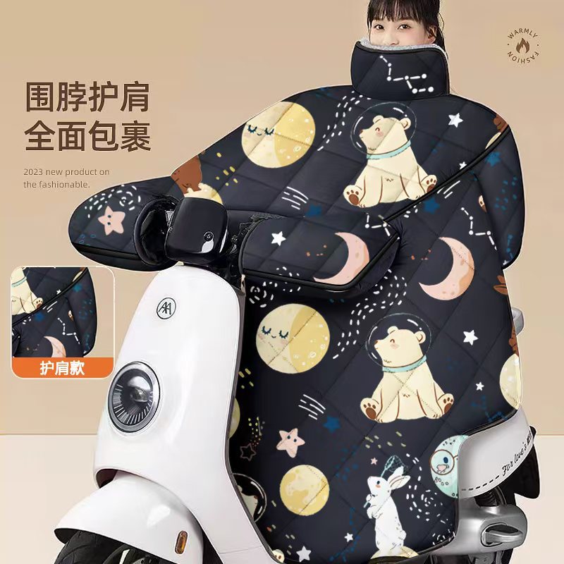 fully enclosed shoulder pad [fleece-lined thickened + scarf] black space bear