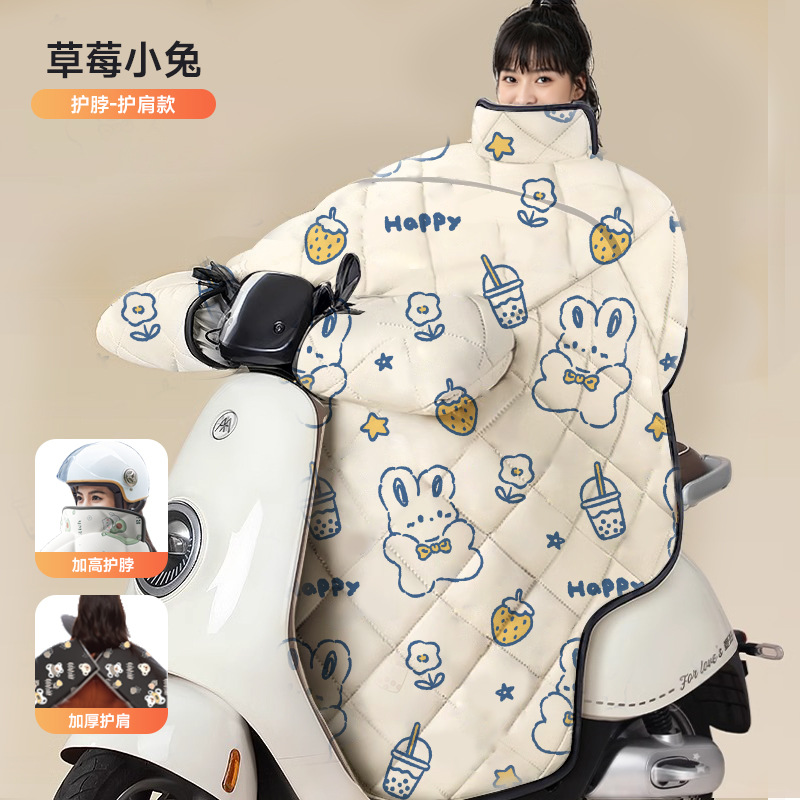 beige strawberry bunny [shoulder scarf + double windproof handle cover] thickened