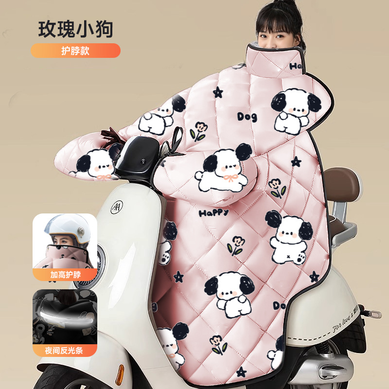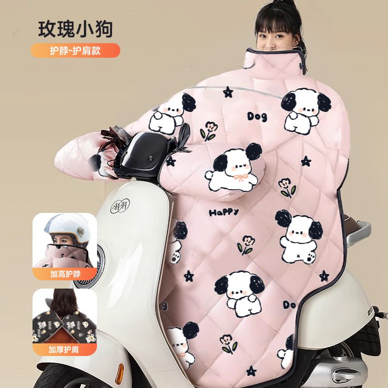 pink roses puppy [shoulder scarf + double windproof handle cover] thickened