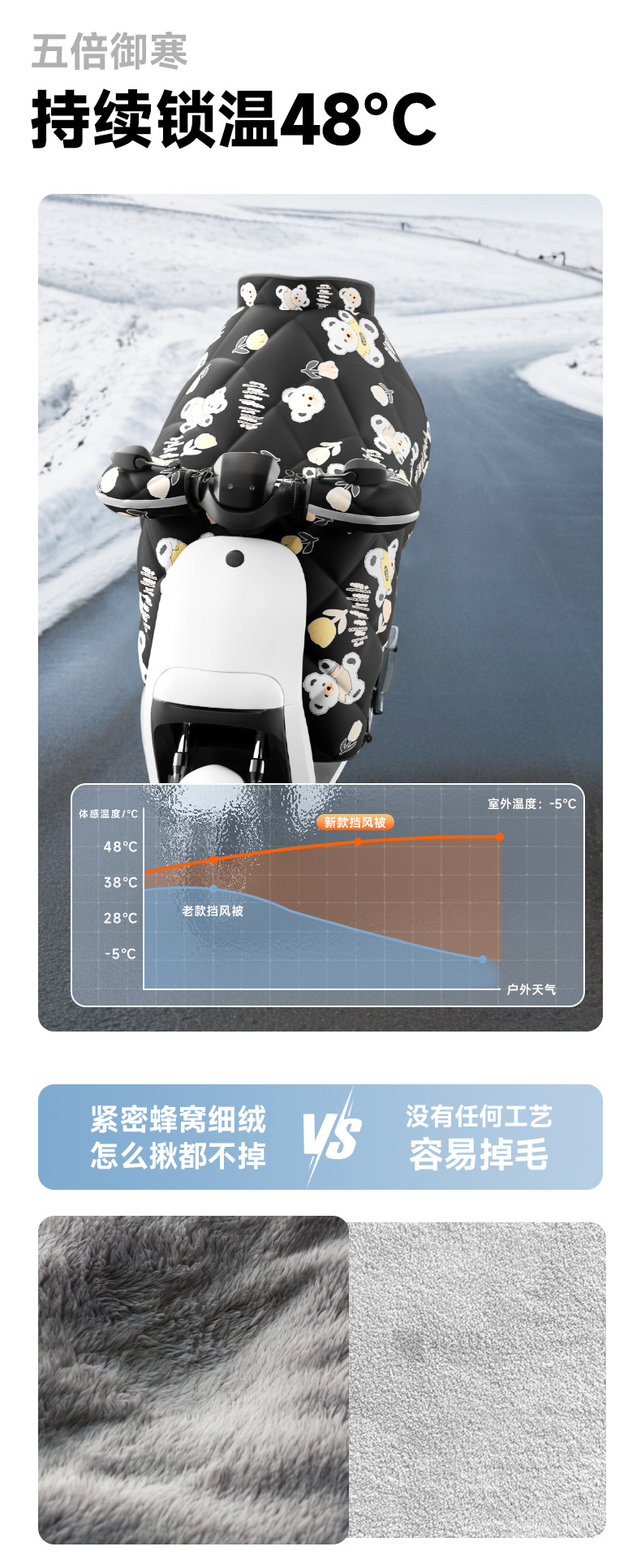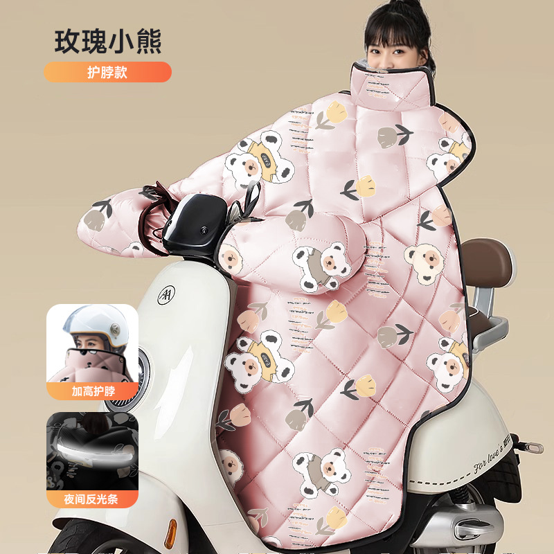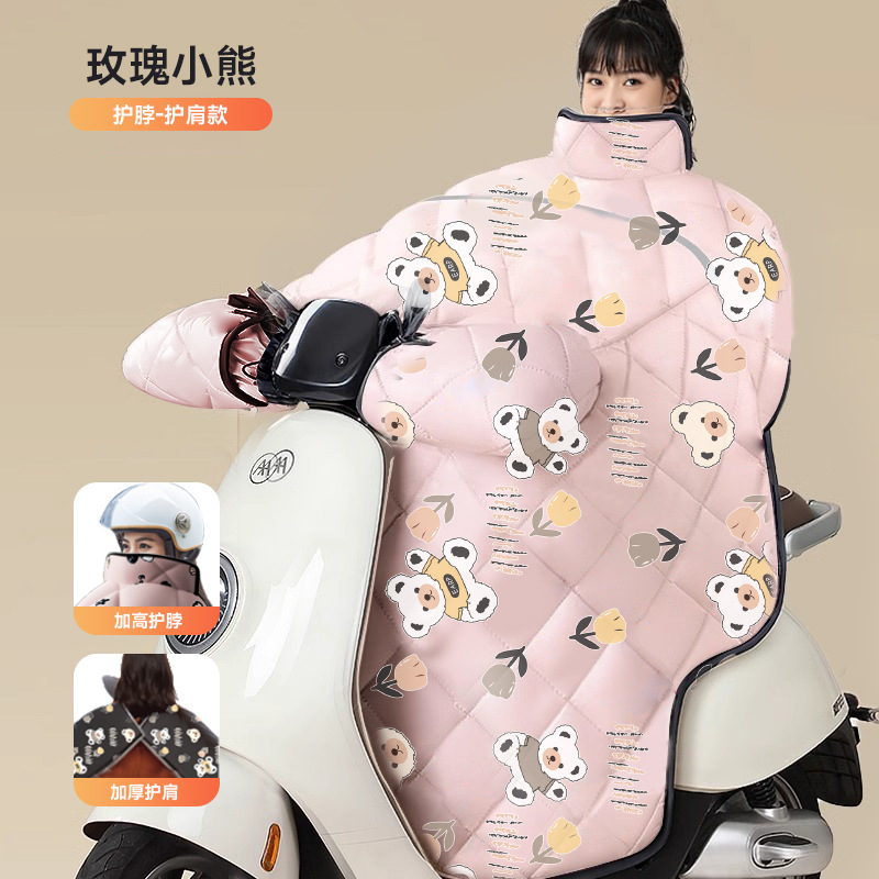 pink roses bear [shoulder protection scarf + double windproof handle cover] thickened