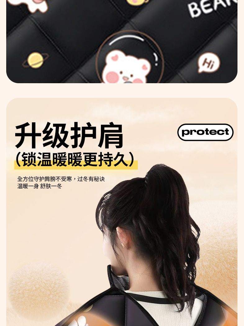 [full wrapped shoulder pad neck protection + extra-thick velvet + hd transparent film] black line bear, cape shoulder pad
