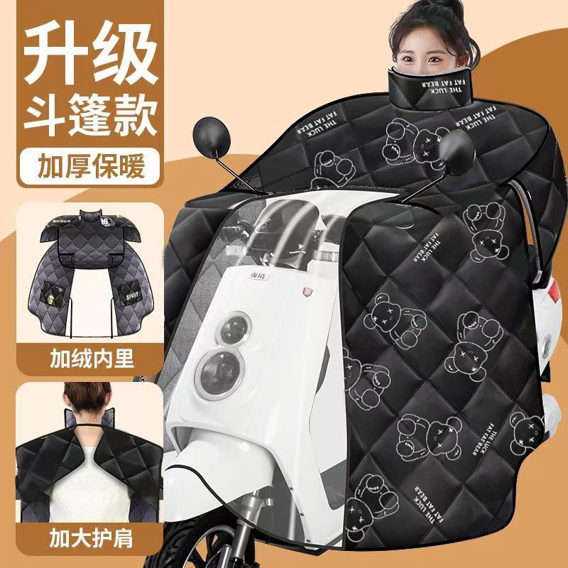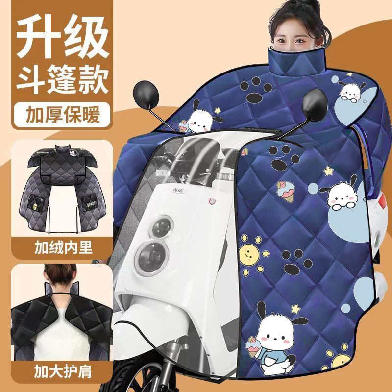 new fleece-lined cape style [shoulder pad + double pocket + waterproof] blue rabbit