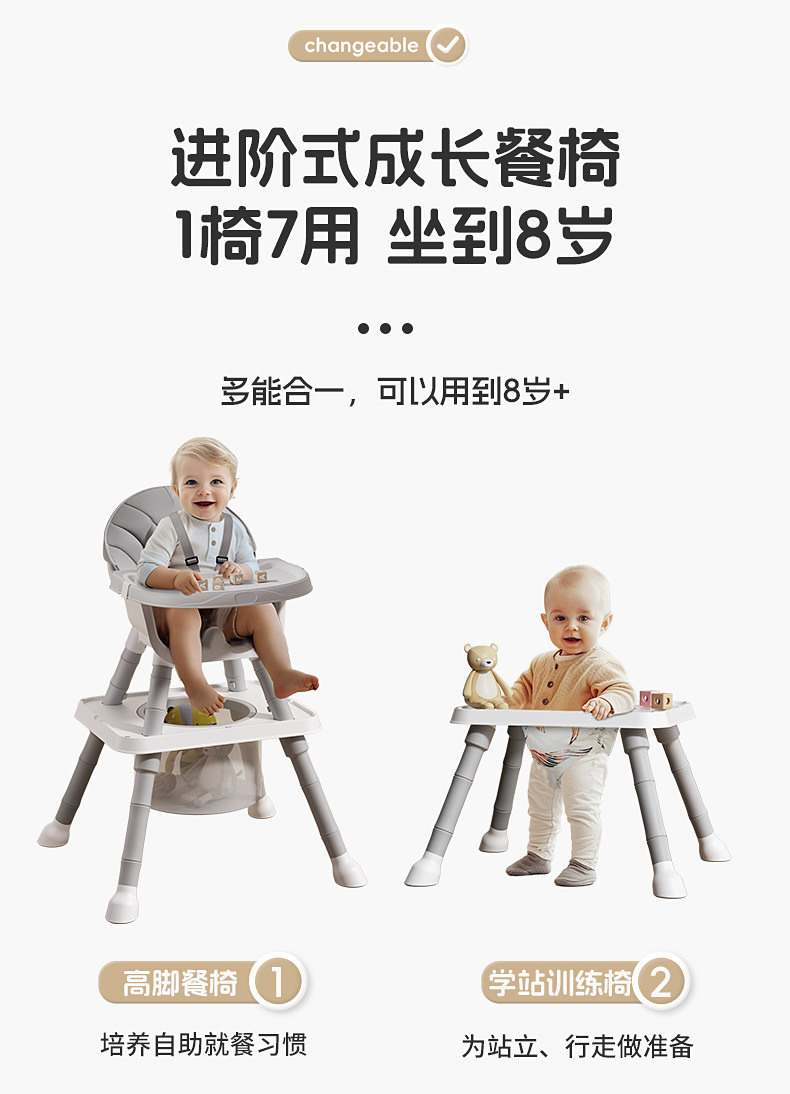 Note: The 'upper tray' is not a standard component of high-stool dining chairs as specified by the national standards. It is only intended for temporary assistance in painting and playing with small building blocks when supervised by an adult. To prevent children from lifting the 'upper tray' and causing food to spill when eating, it should not be used for dining or playing with heavy objects.