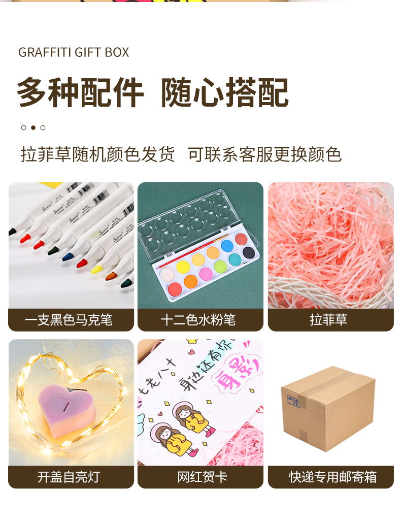 box 10 (50*40 * 30cm)-gift box + raffia + warm light + greeting card