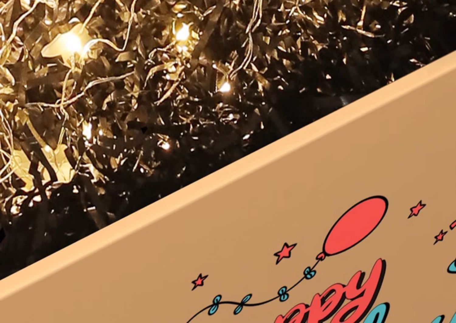 no. 12 box (62 x46x42cm)-gift box + raffia + warm light + greeting card