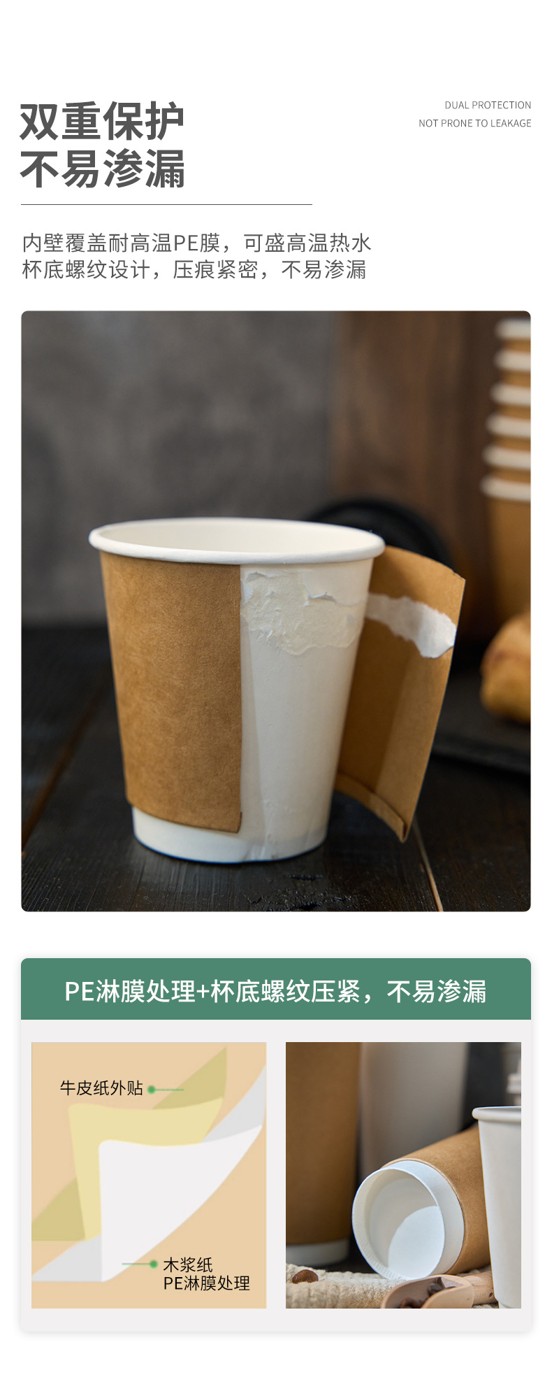 12oz90 caliber/400ml cowhide double-layer coffee cup-without cover; see details