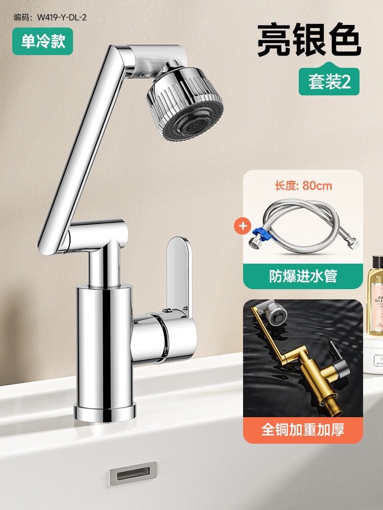 [bright silver single cold model] universal faucet + 80cm explosion-proof braided hose