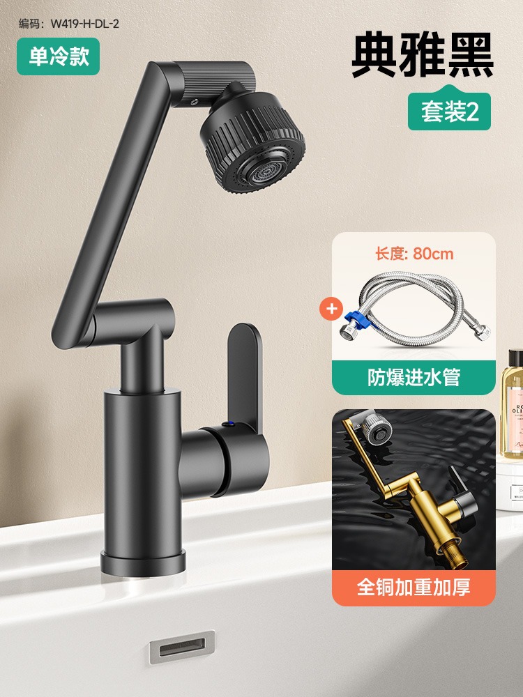 [elegant black single cold model] universal faucet + 80cm explosion-proof braided hose