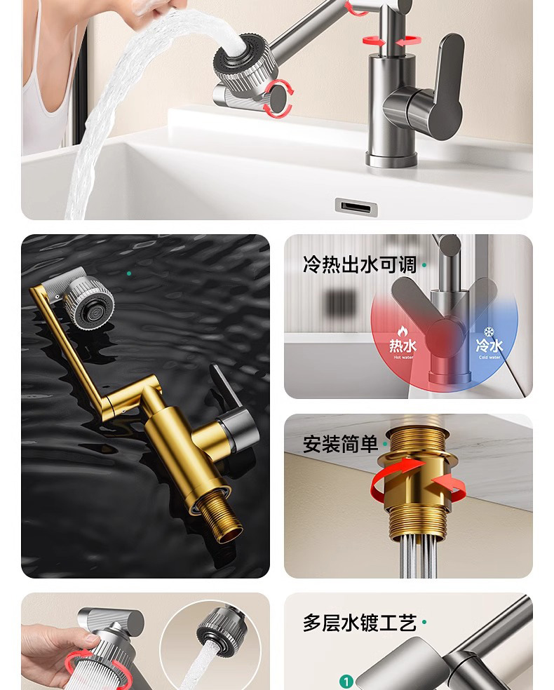 [bright silver hot and cold] universal faucet ◆ two-gear switching water outlet