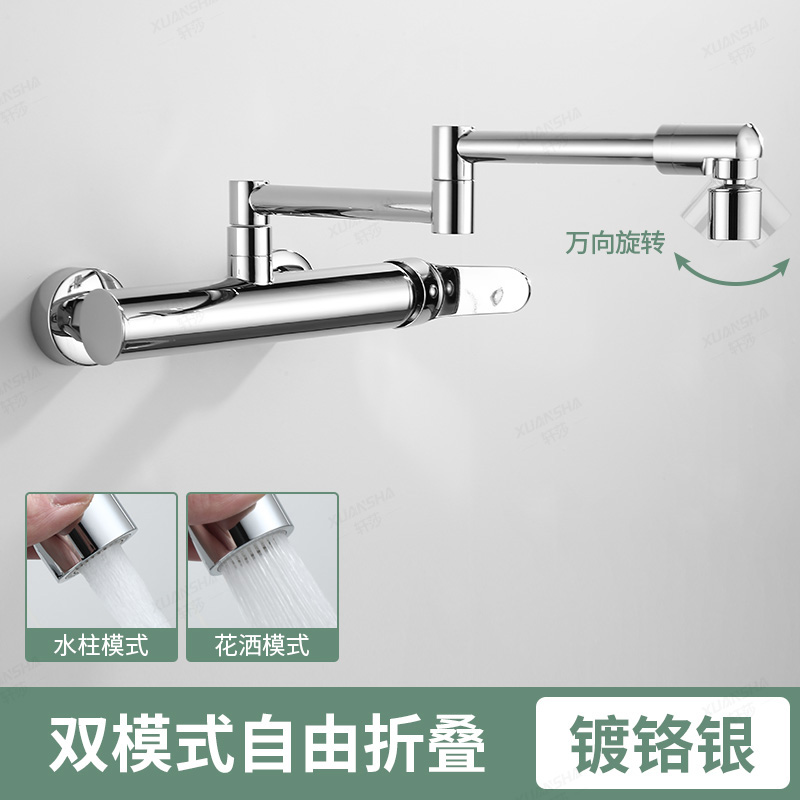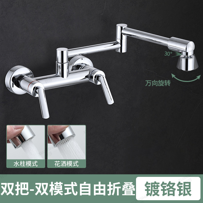 double handle hot and cold folding into the wall-chrome silver single mode