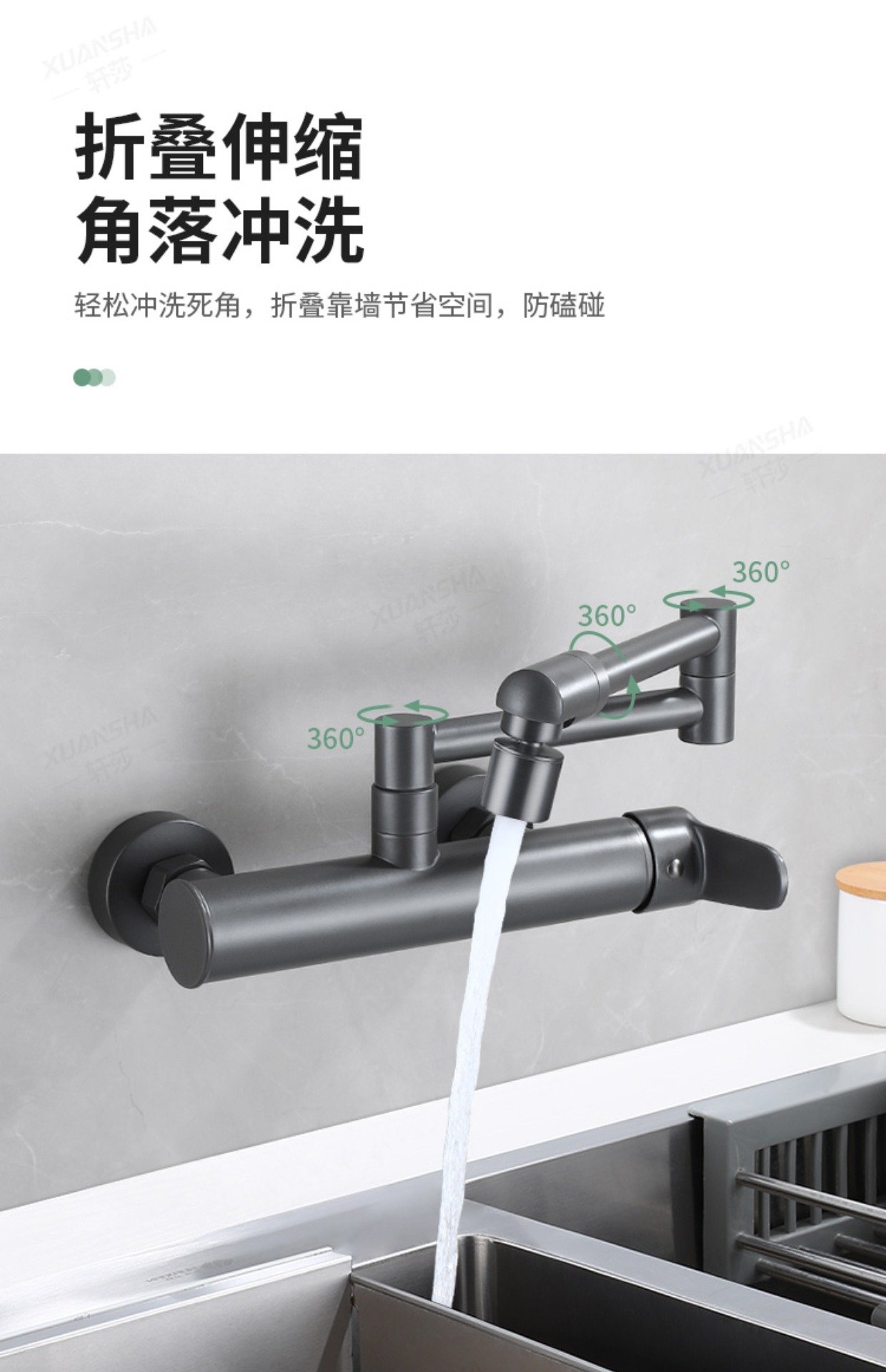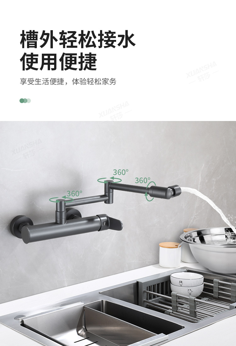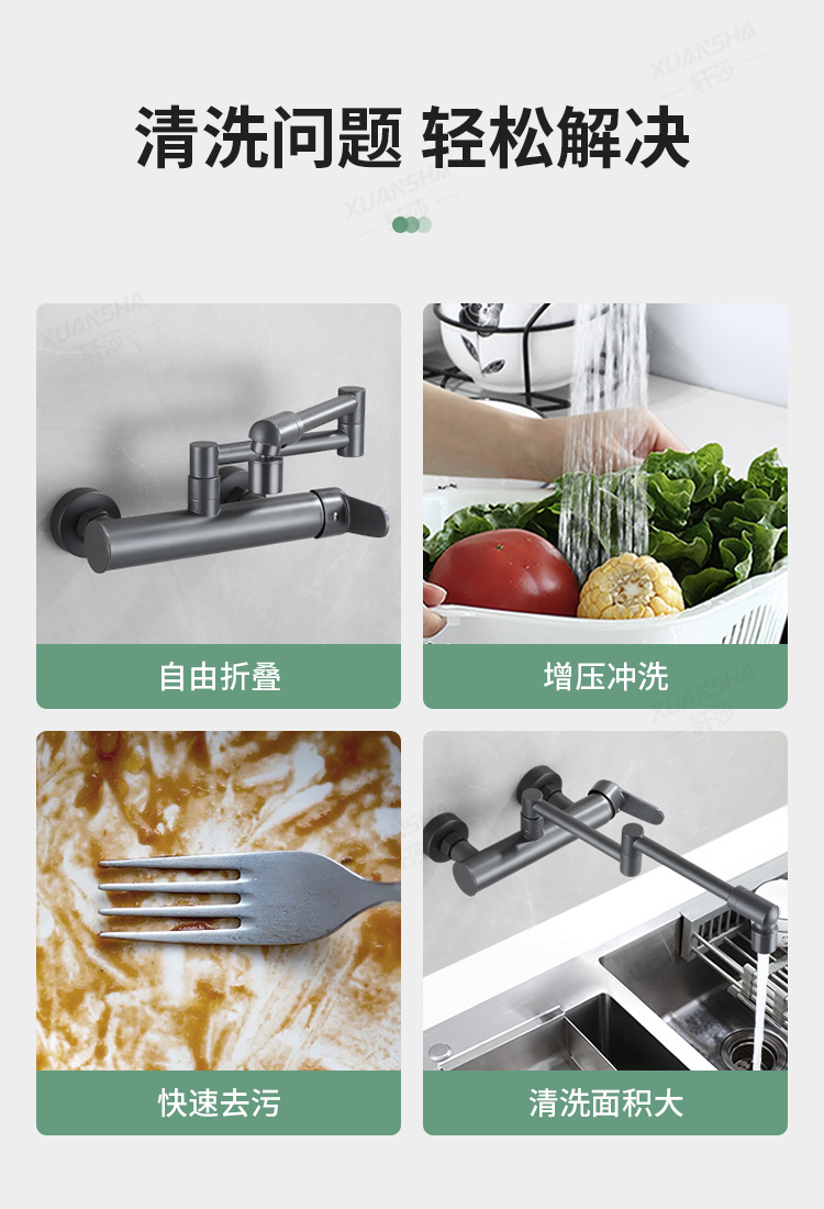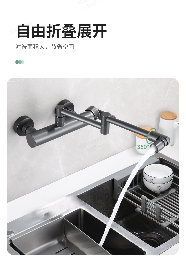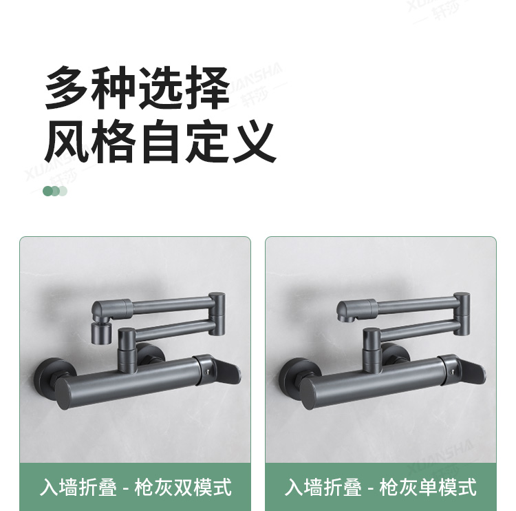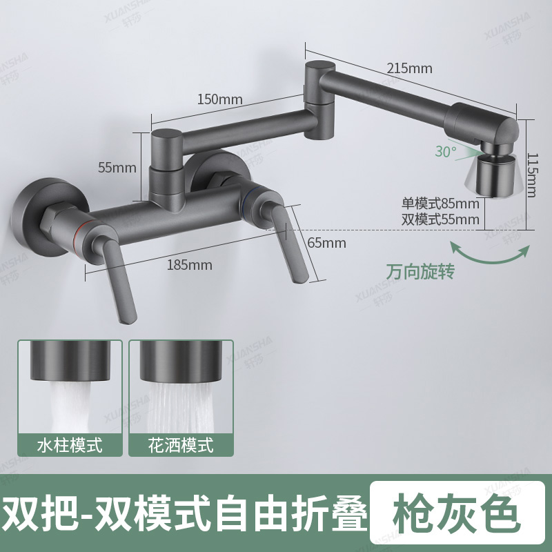 double-handle hot and cold folding into the wall-gun gray dual-mode