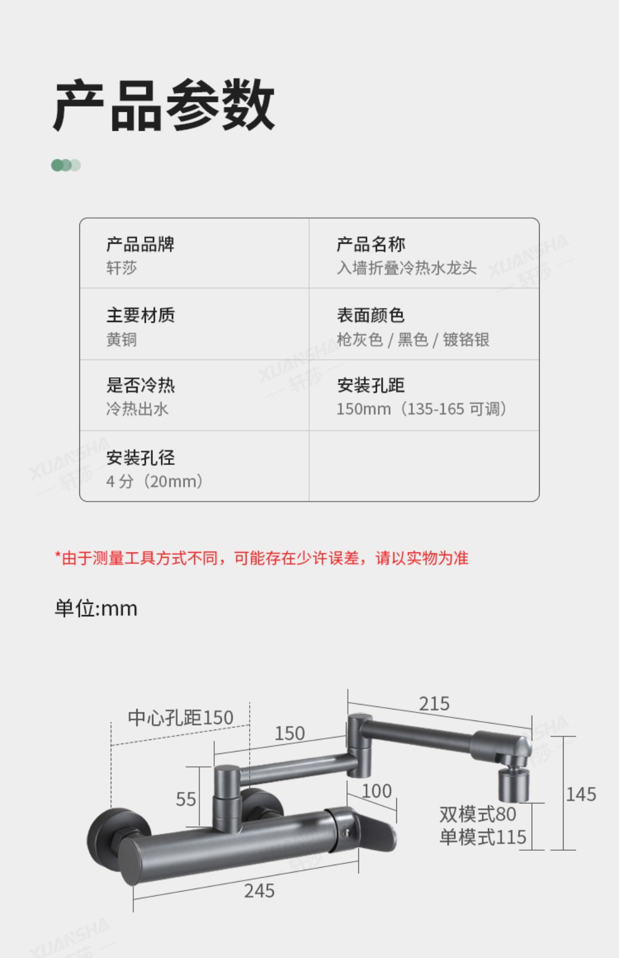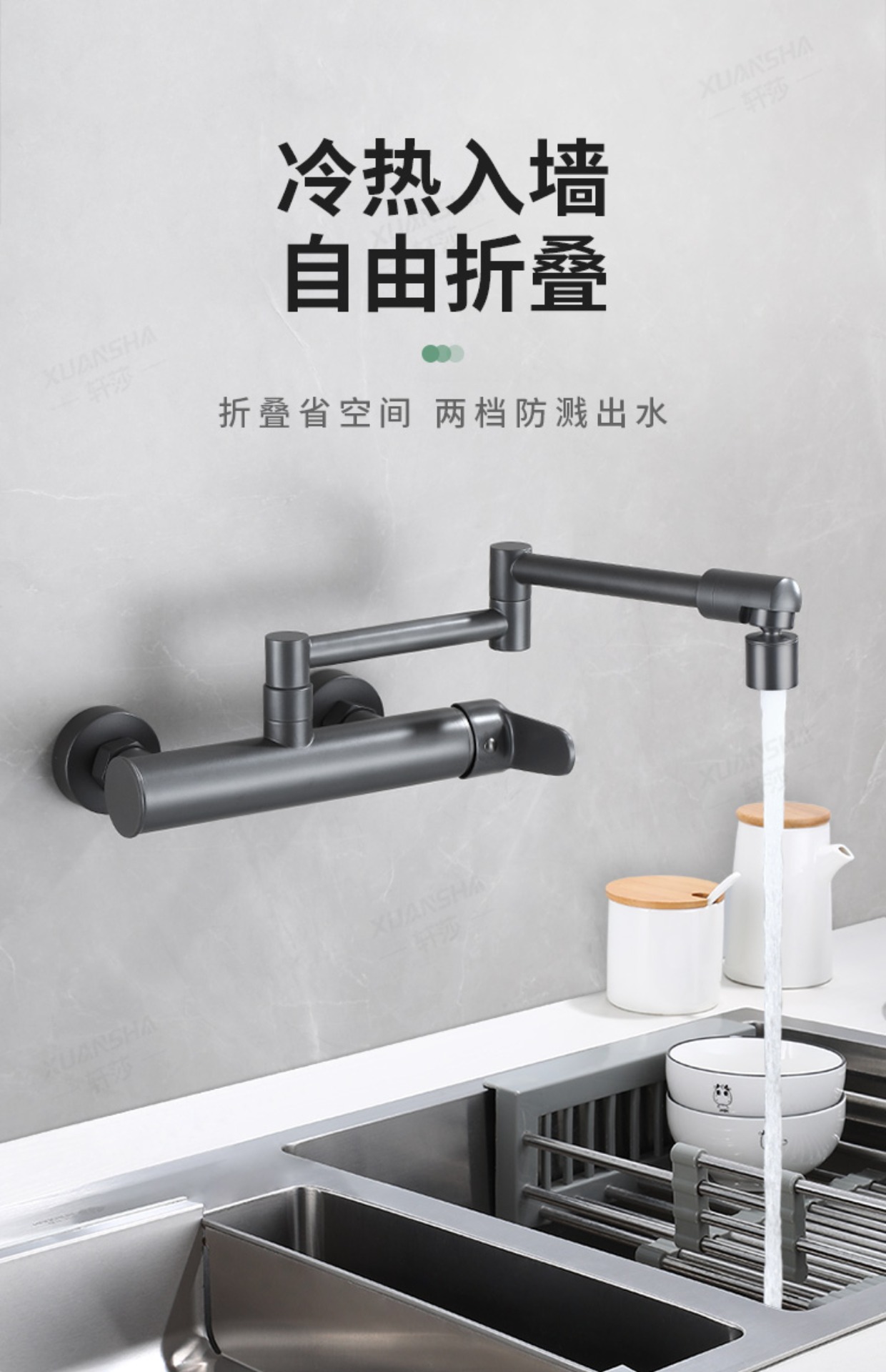 double-handle hot and cold folding into the wall-white dual-mode