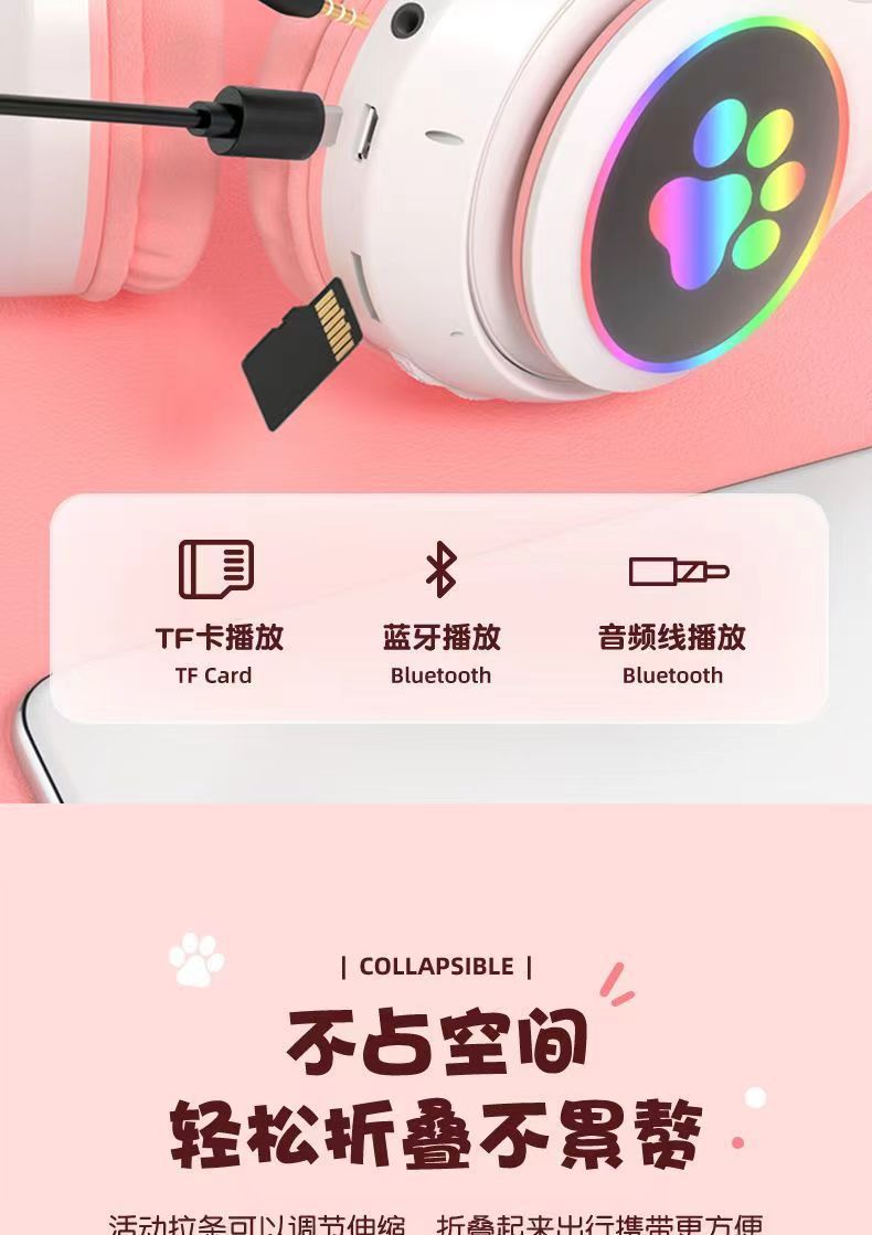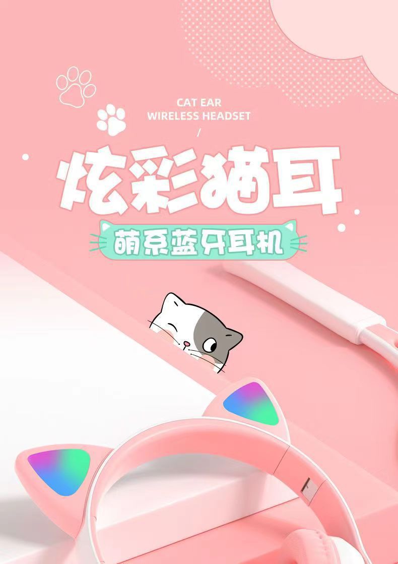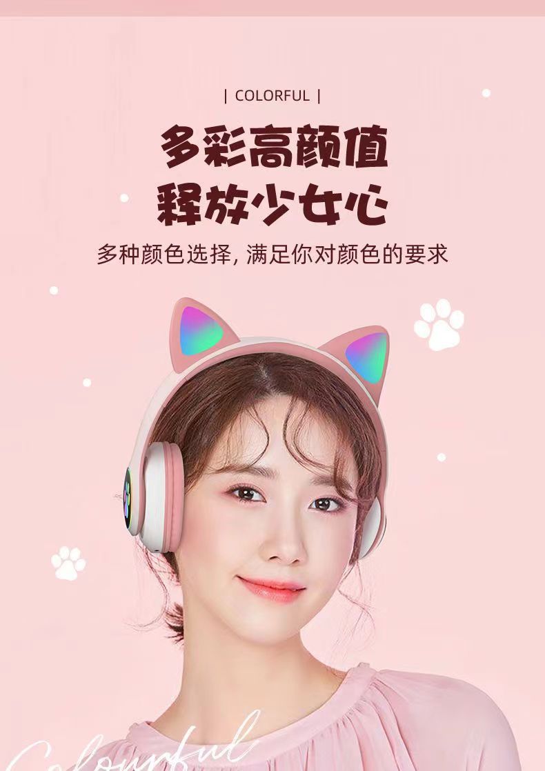 cross-border stn-28 cartoon luminous ear headset bluetooth headset radio competition gaming headset new for girls