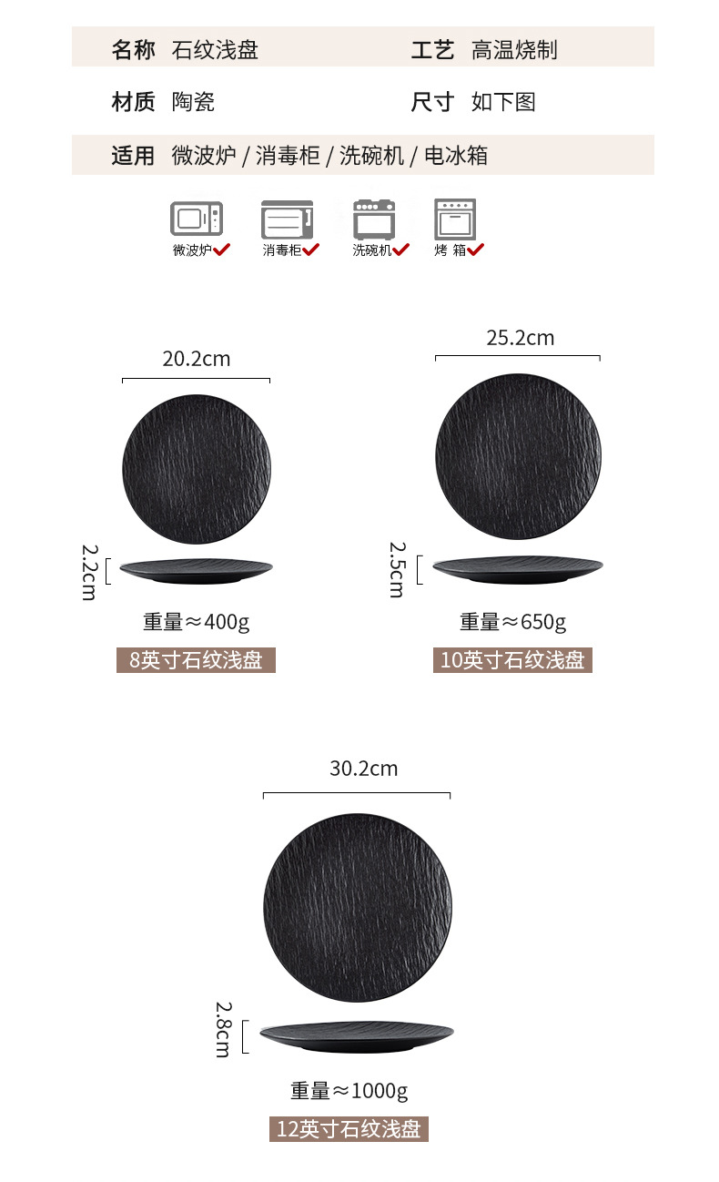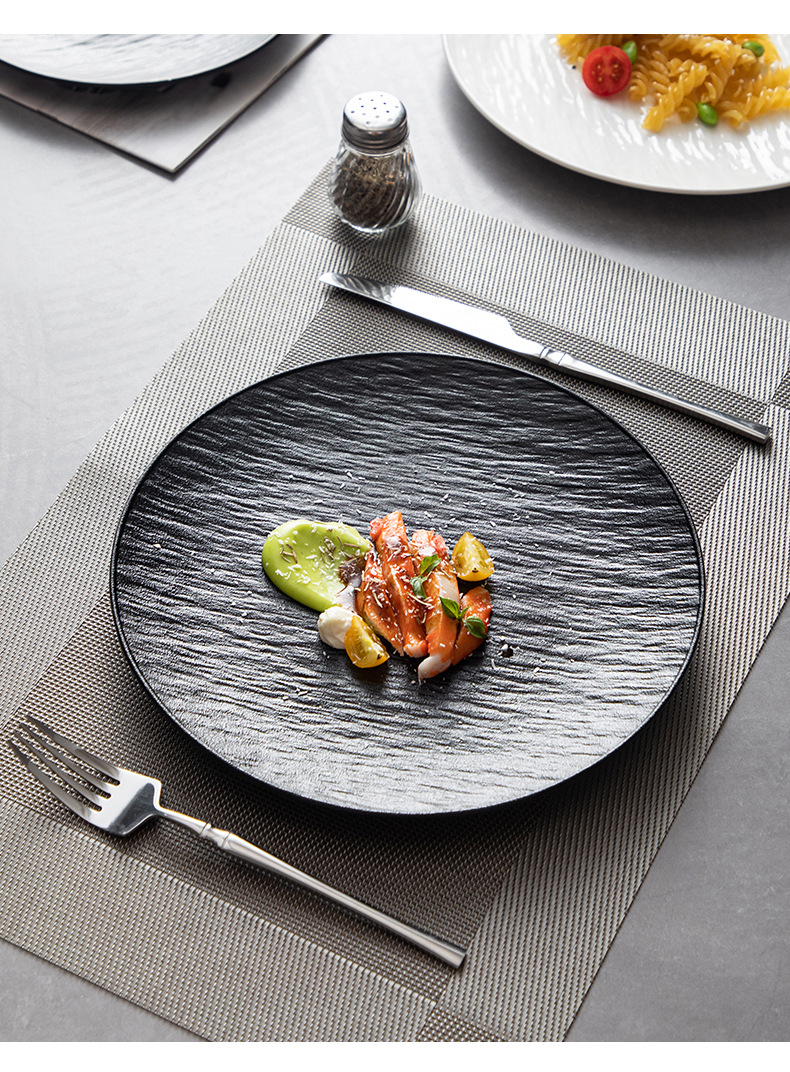 12-inch stone pattern shallow plate-matte black