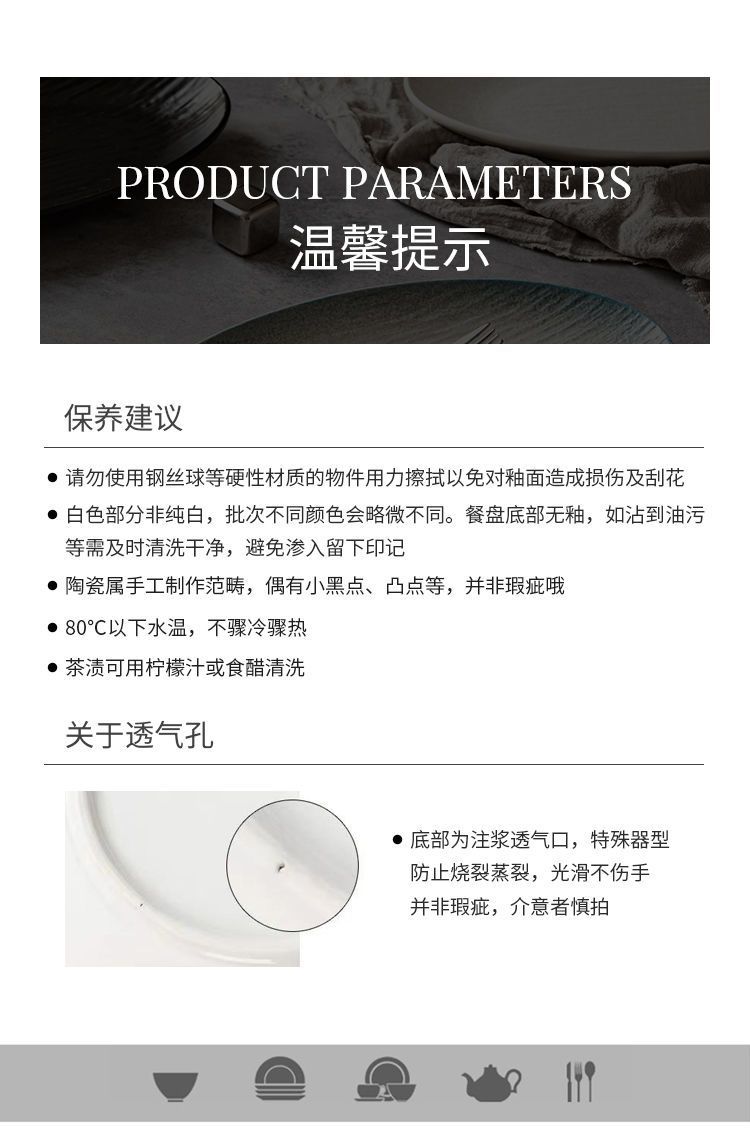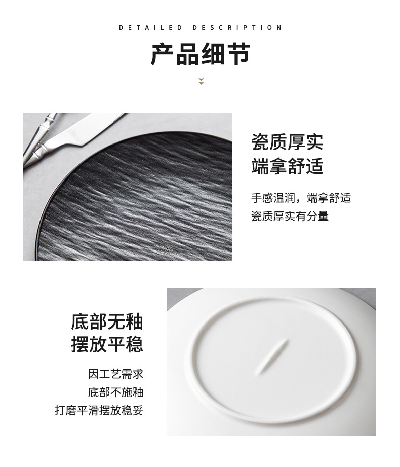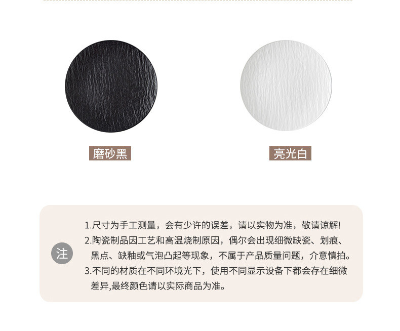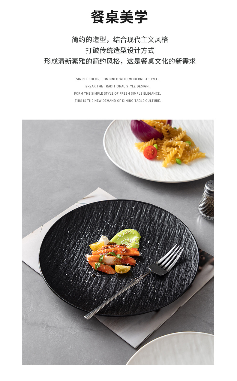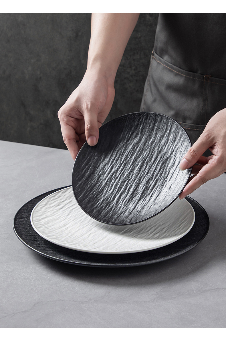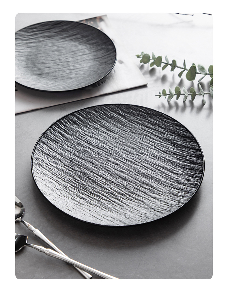 8-inch stone pattern shallow plate-matte black