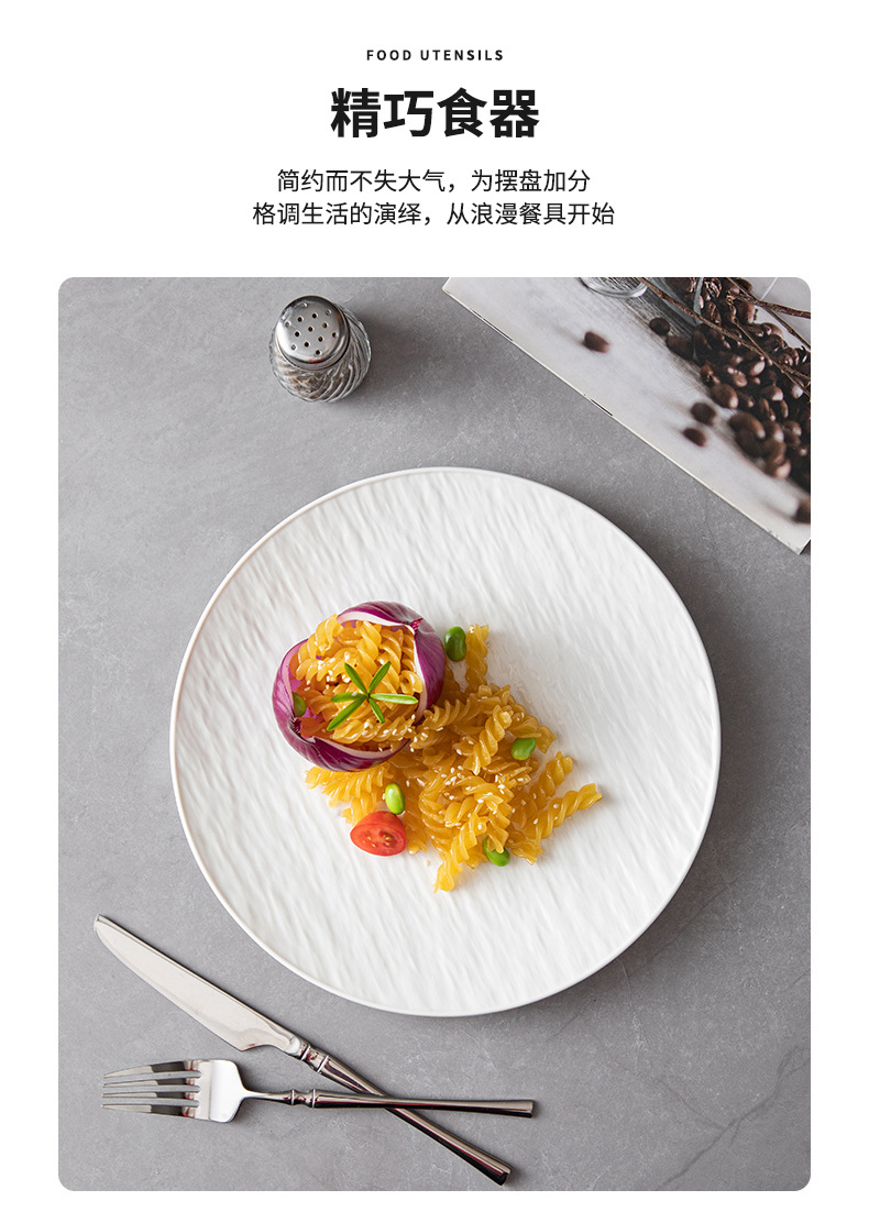 8-inch stone pattern shallow plate-bright white