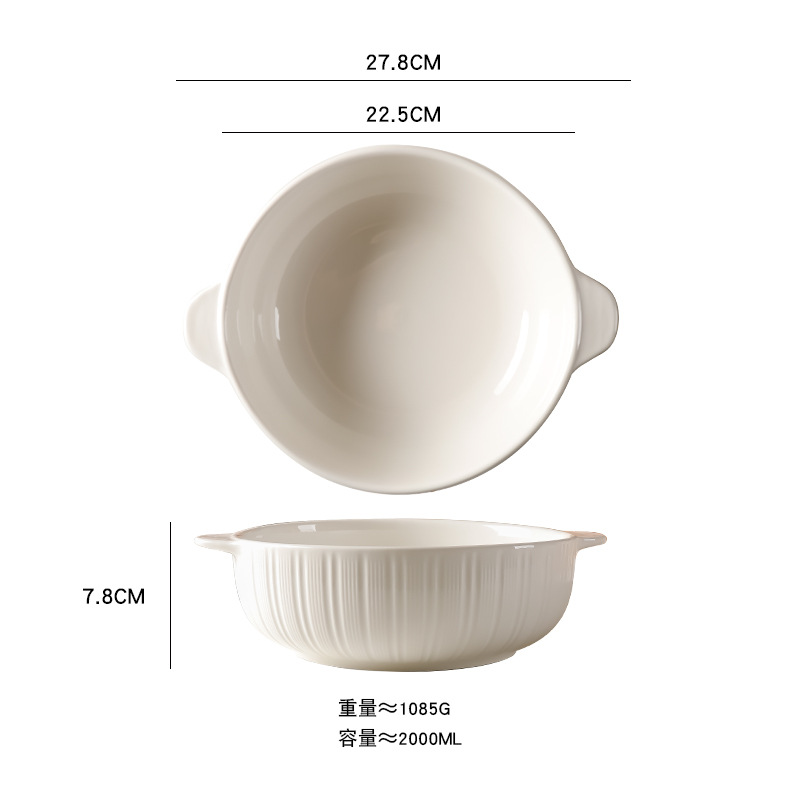 11-inch vertical pattern binaural soup bowl-white