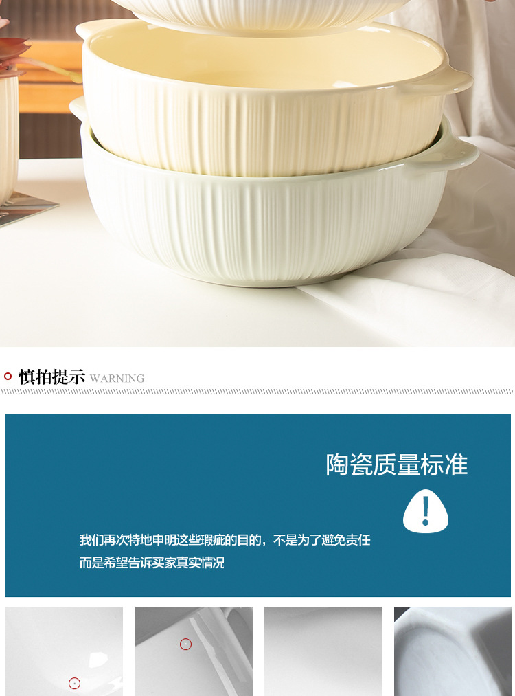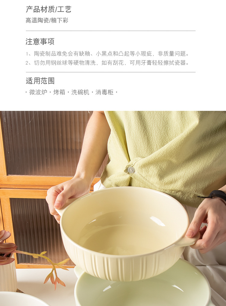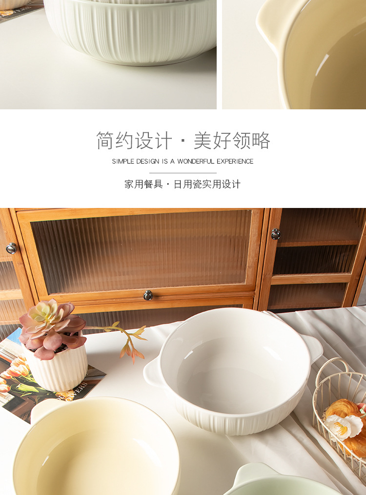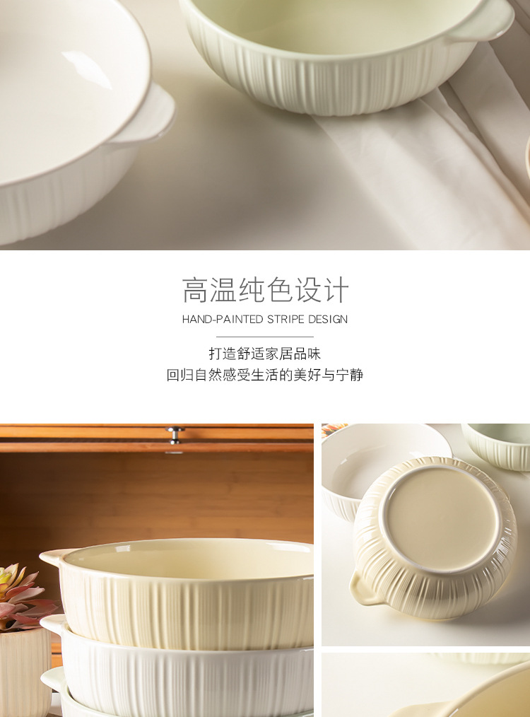 11-inch vertical stripes binaural soup bowl-beige