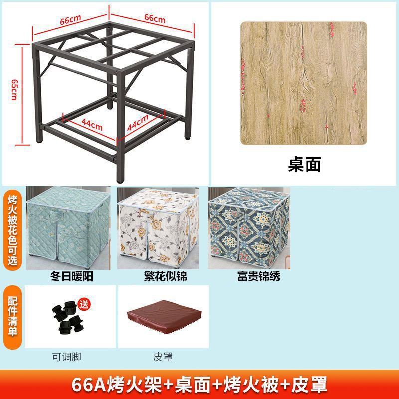 five-piece set (table + surface + quilt + leather cover + baking net), 66*66 * 65cm folding galvanized rack