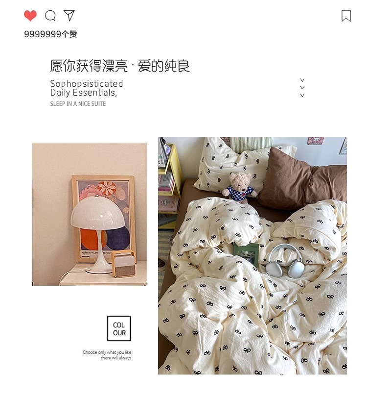 | 1.5m fitted sheet four-piece set: suitable for 200 * 230cm duvet insert | CN¥ 103.2 | 888888 set available |
