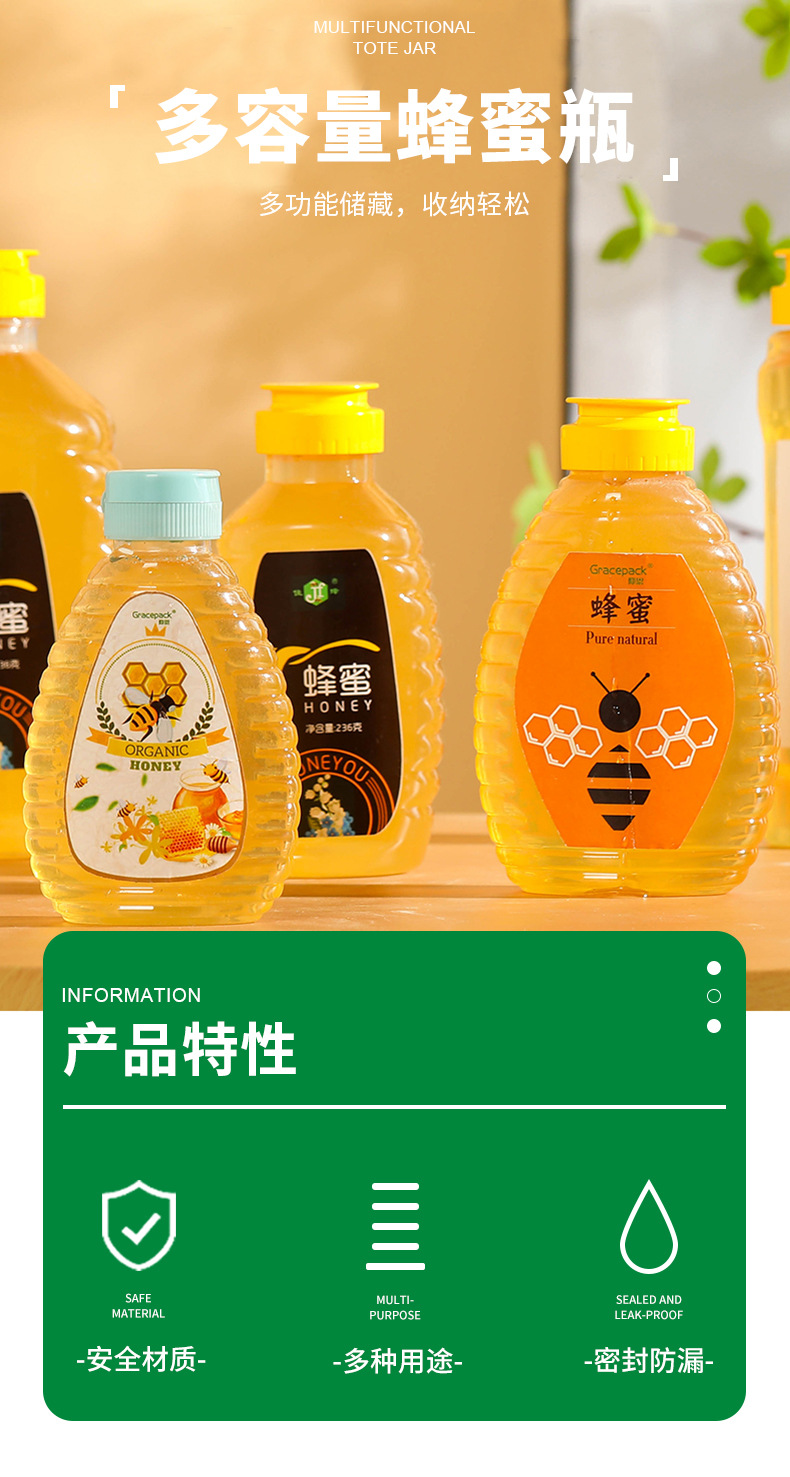 sealed transparent pet a bottle of honey silicone valve jam squeezing bottle
