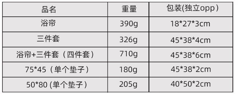 | four-piece shower curtain 180*180 + toilet three-piece set 45*70 | CN¥ 33.0 | 99999 set available |