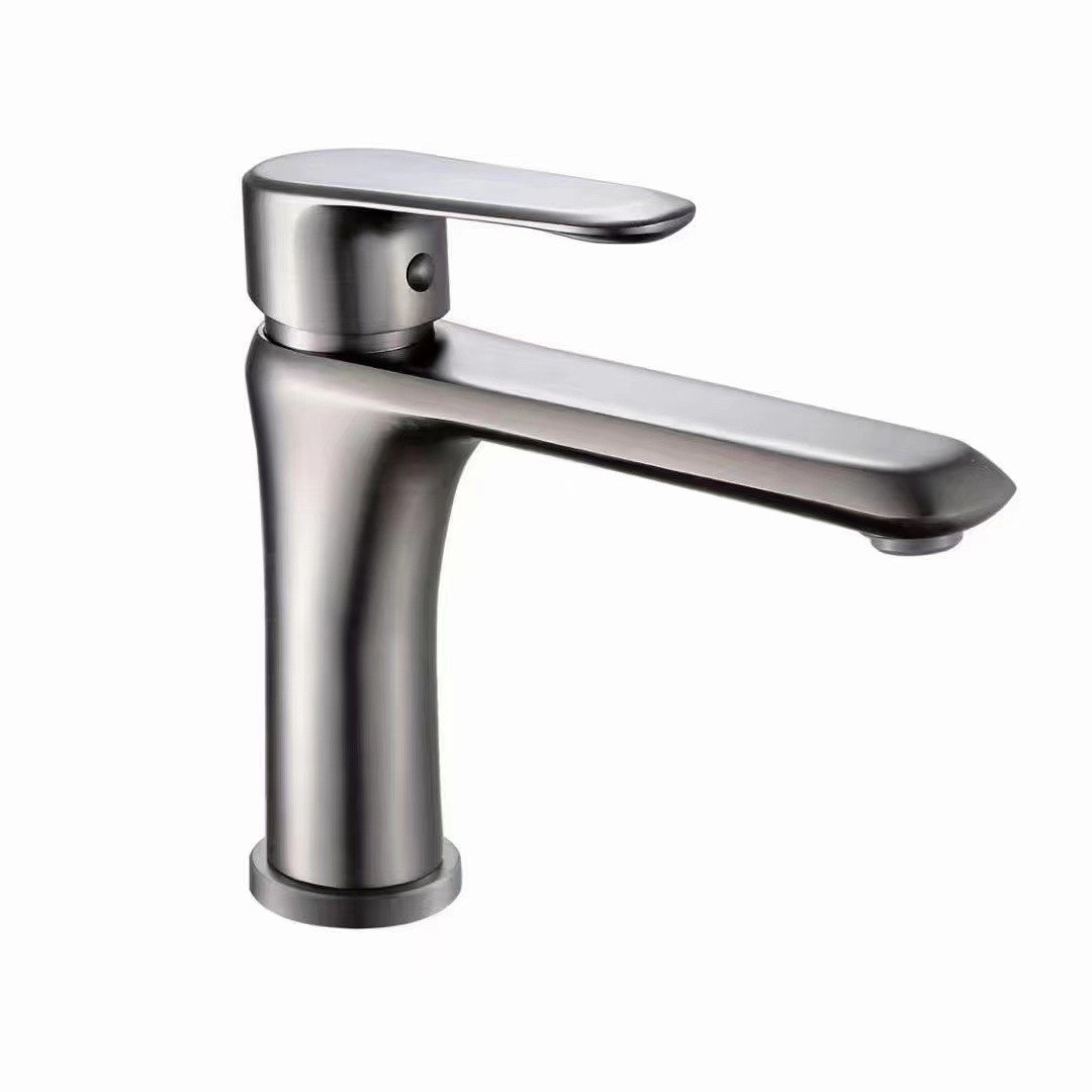 gun gray stainless steel flat rotating basin faucet