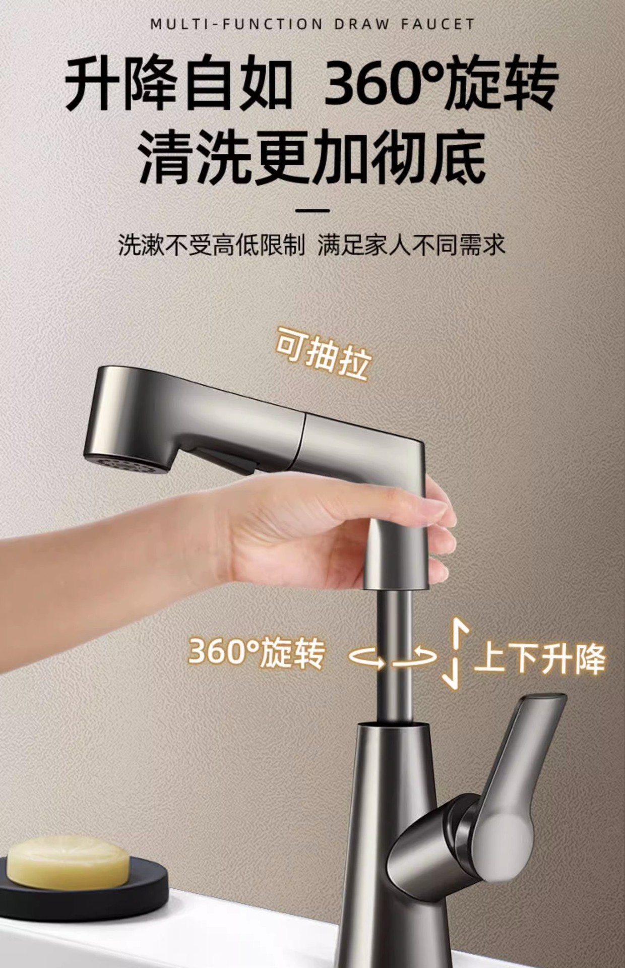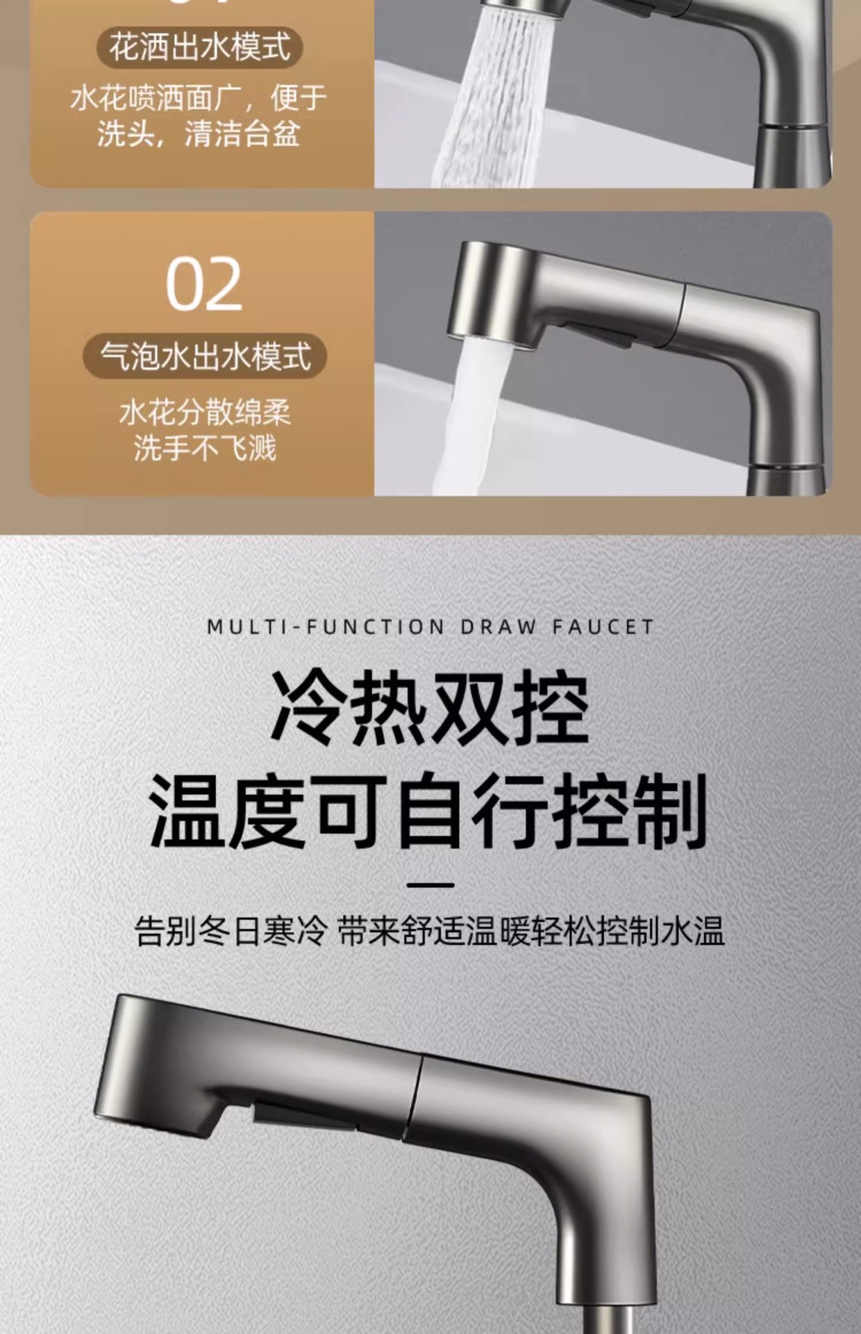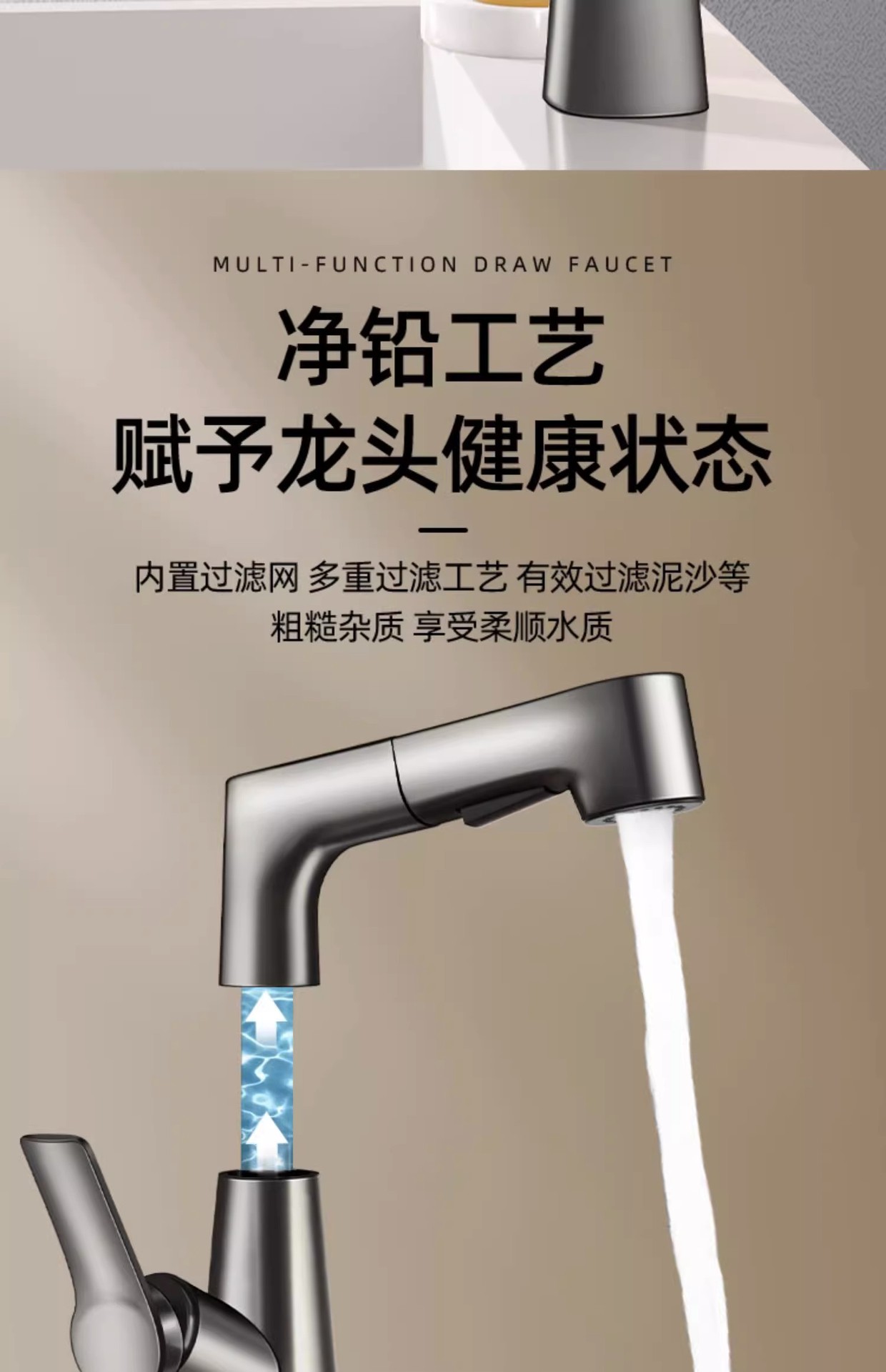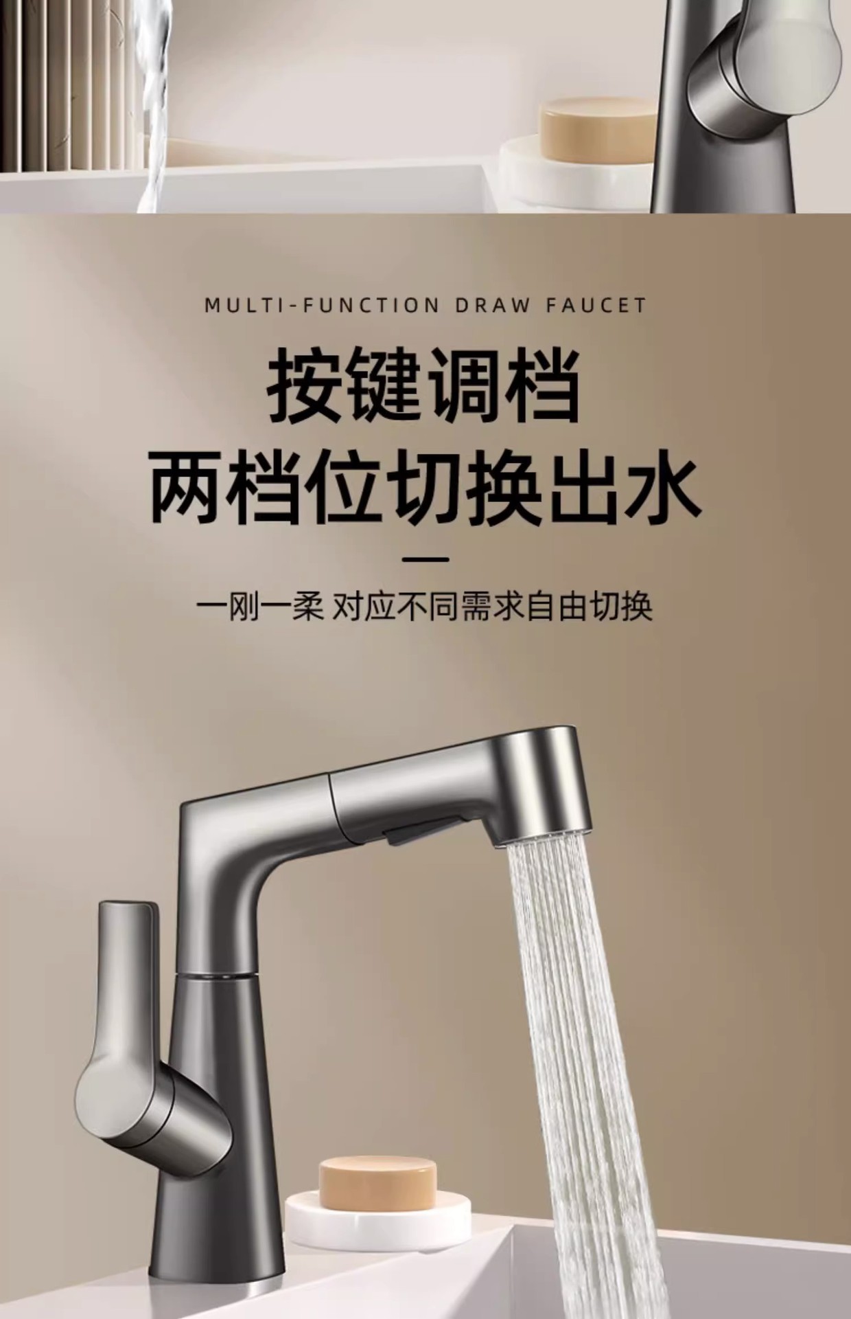 lifting pull basin faucet-water plated gray
