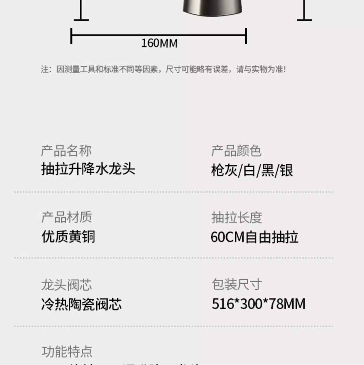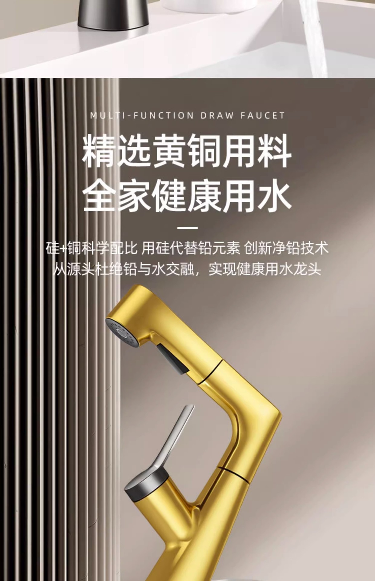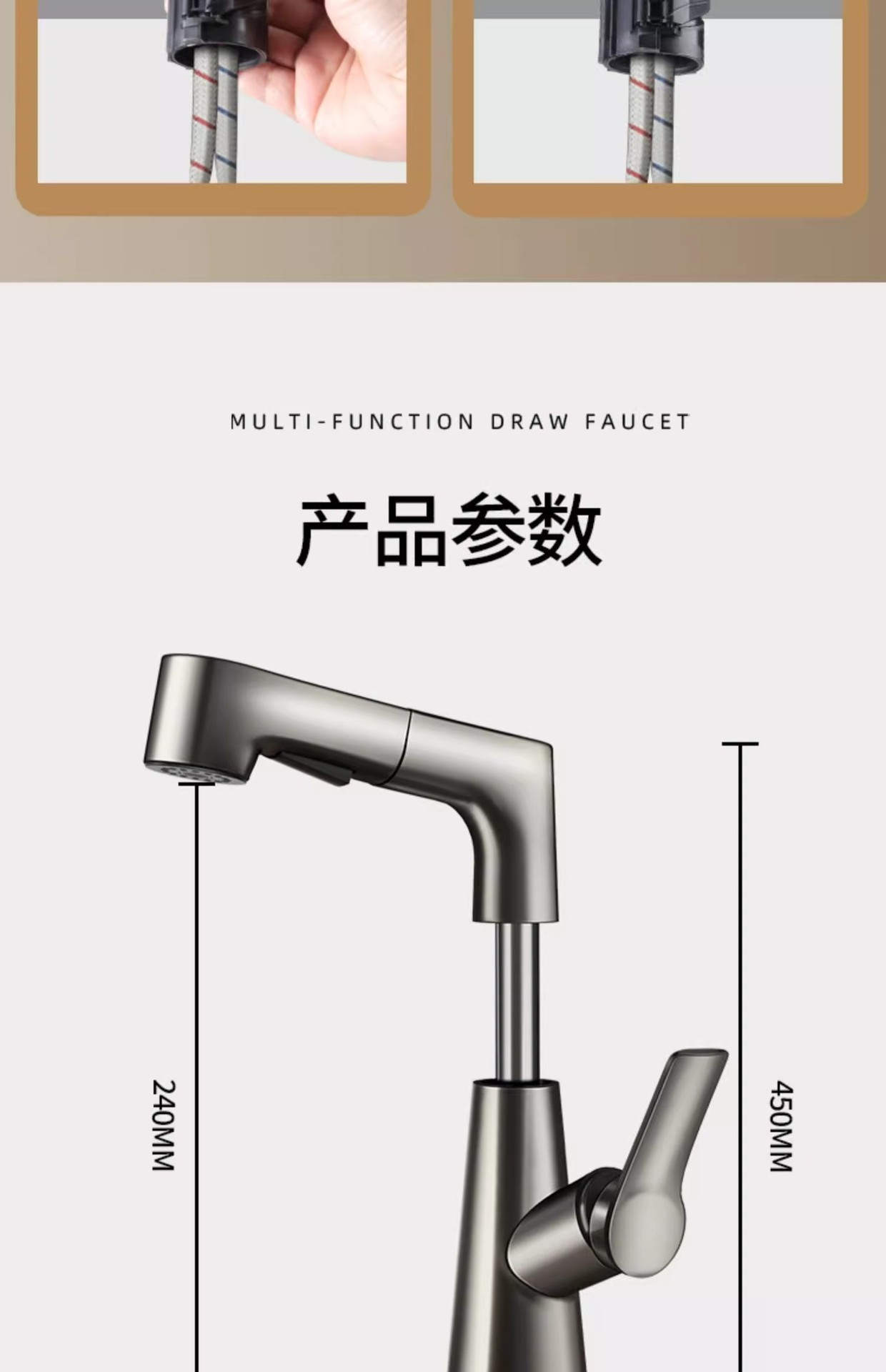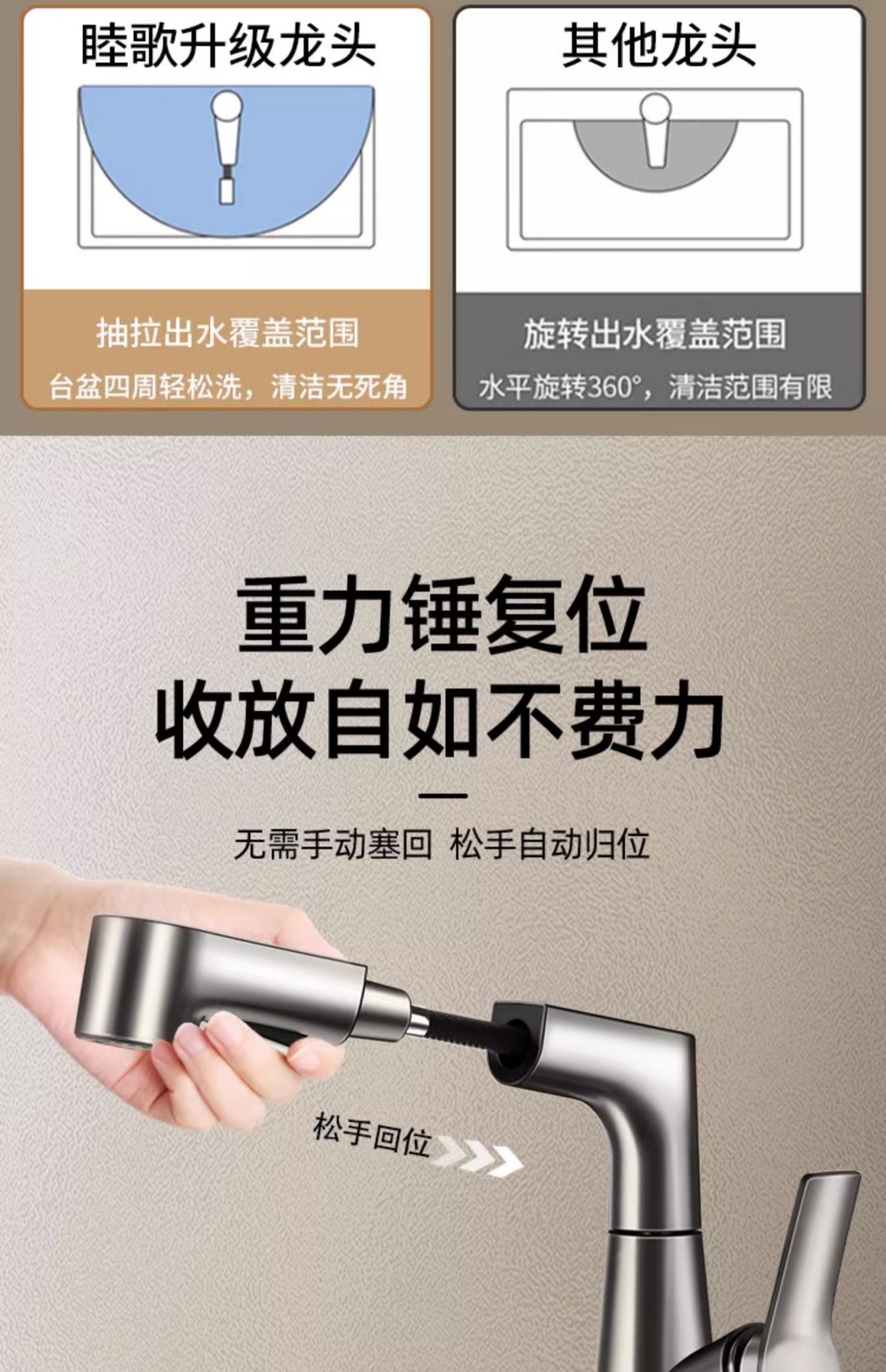 lifting pull basin faucet-water plated gray