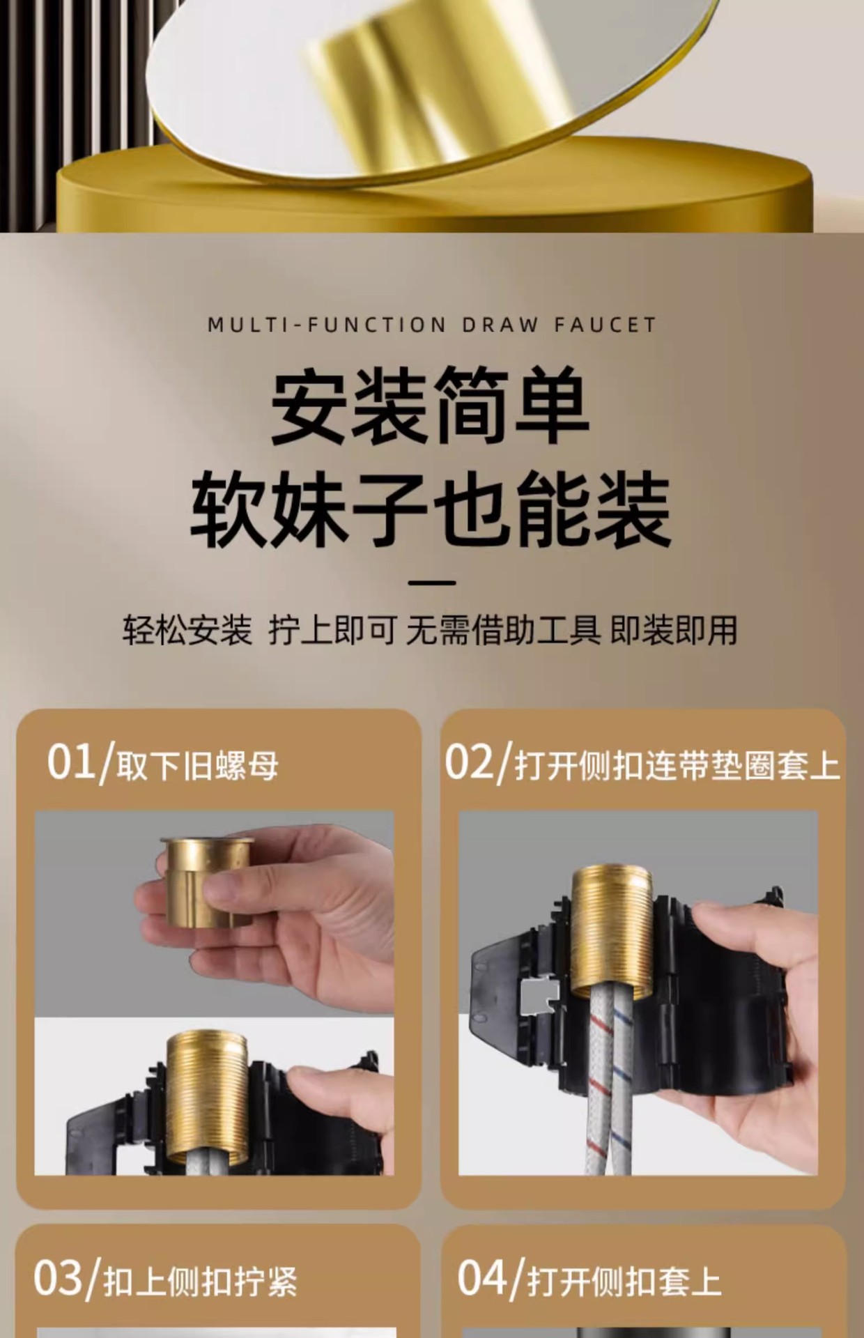 lifting pull basin faucet-cream white