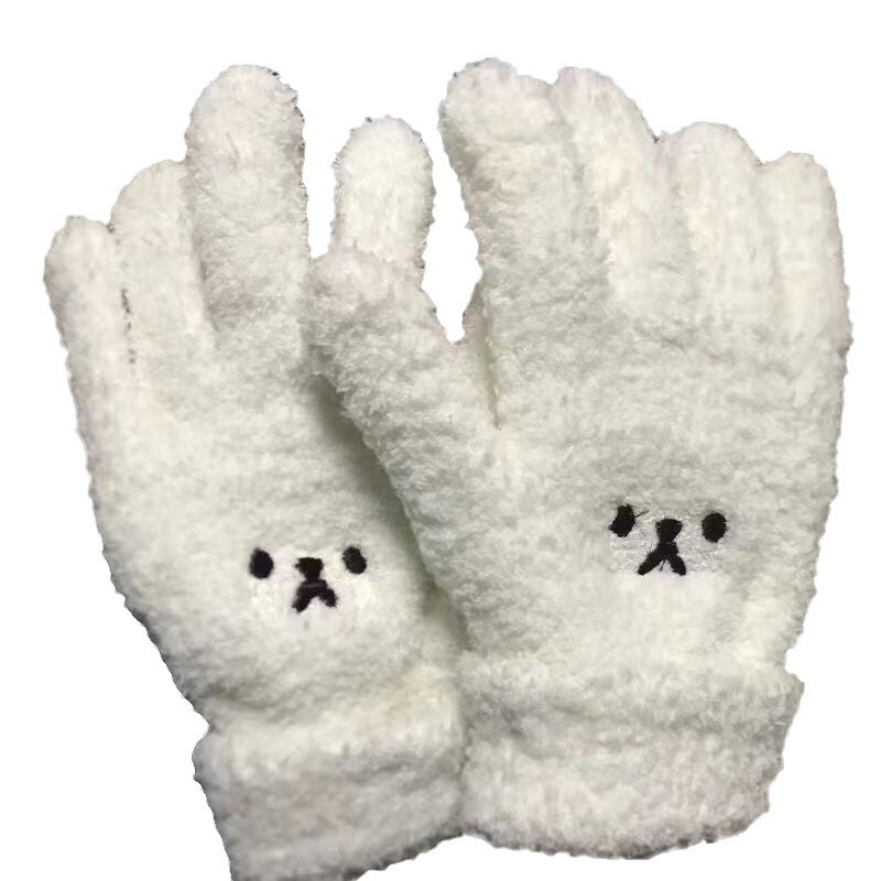 thickening embroidery bear gloves-white