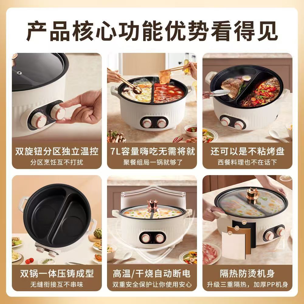 | 7 liters two-flavor hot pot [fast heating] partition temperature control | CN¥ 195.2 | 99999 piece available |