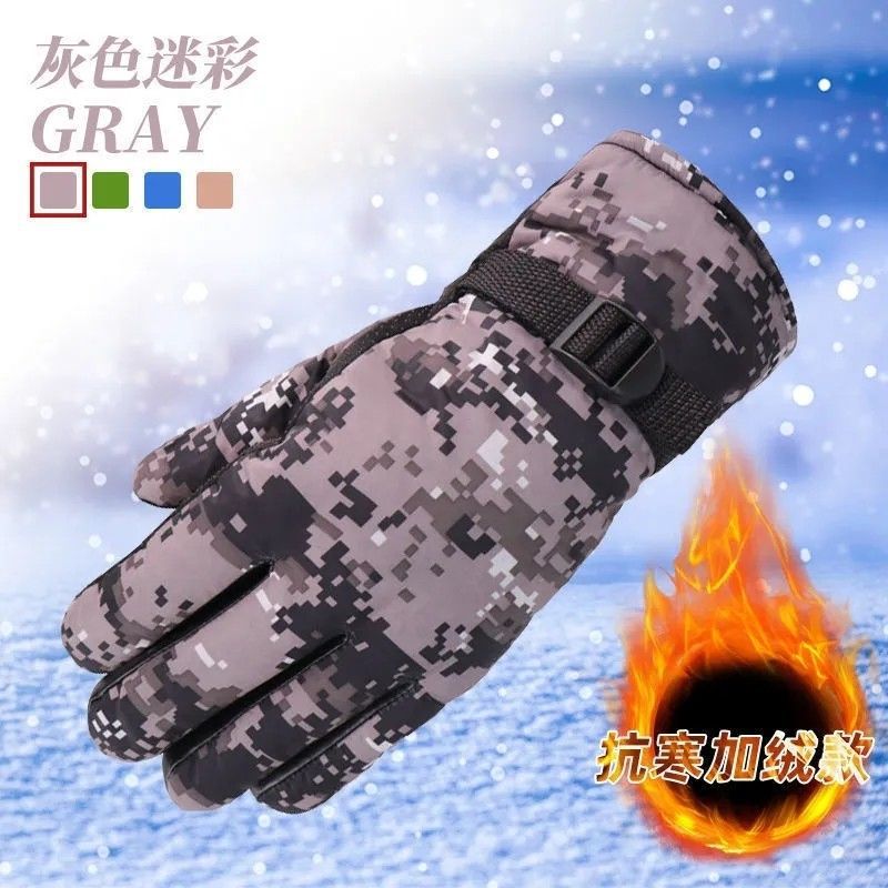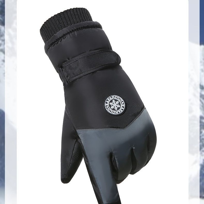 large touch screen anti-slip snow gloves men's black and gray