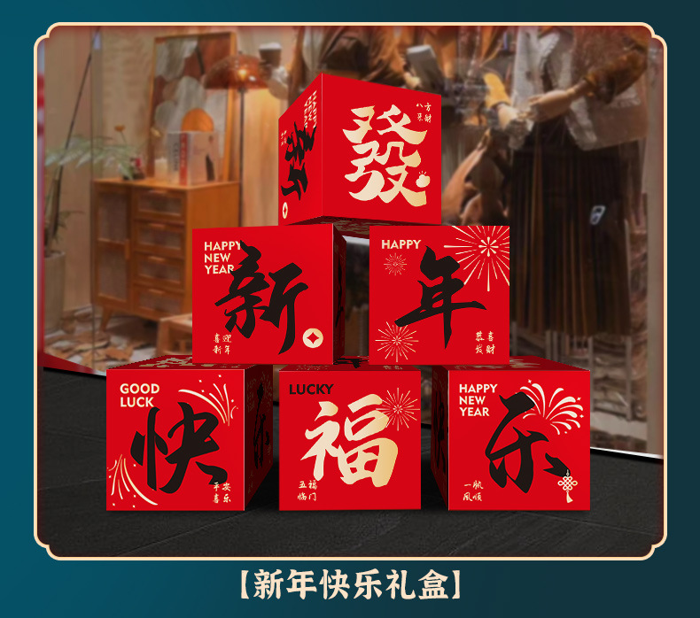 happy new year gift box 4-piece set (six pictures are different)