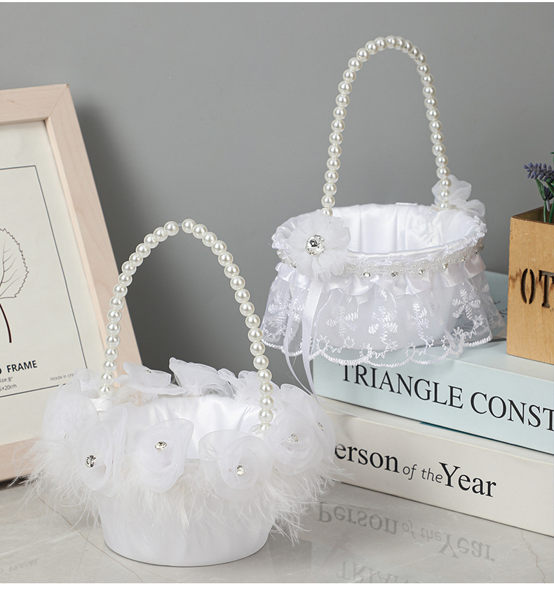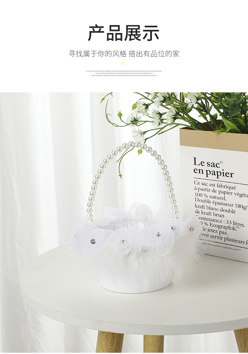 small size feather flower basket plastic flower baskets pearl handle