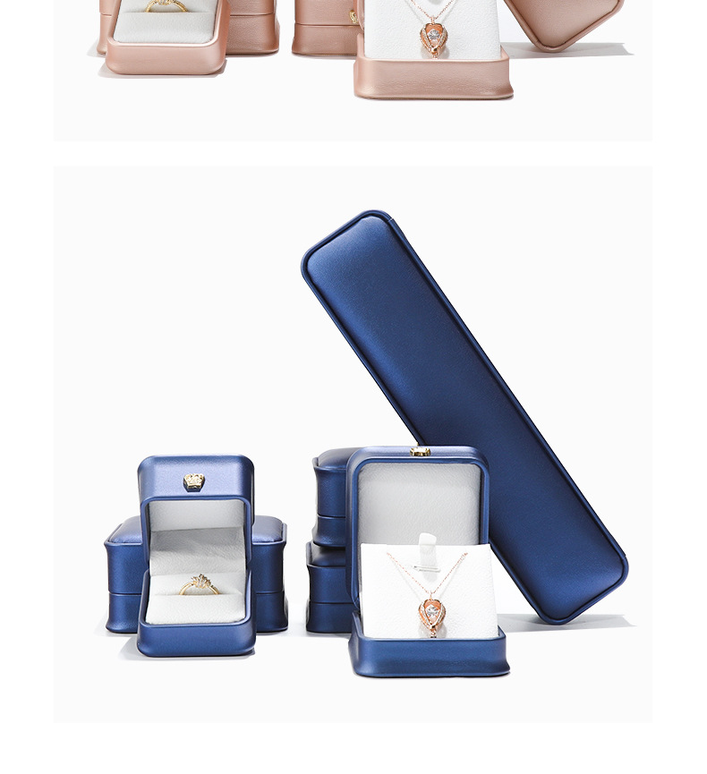 sapphire blue small pendant box; crown pu leather jewelry box