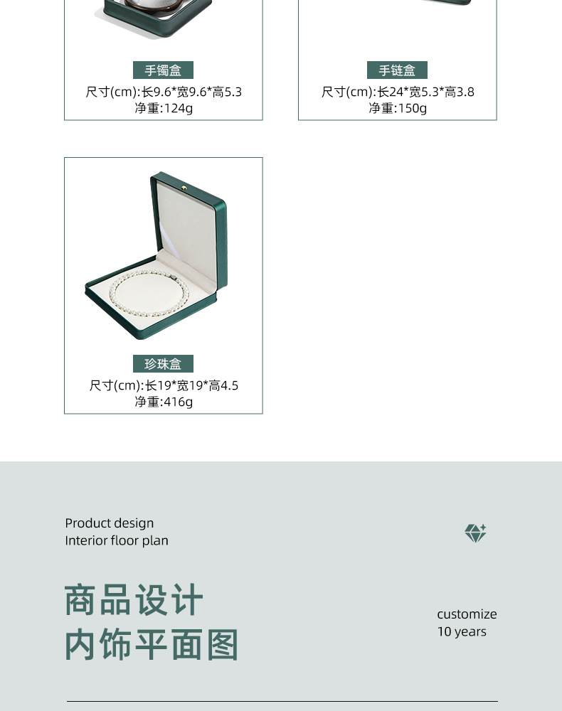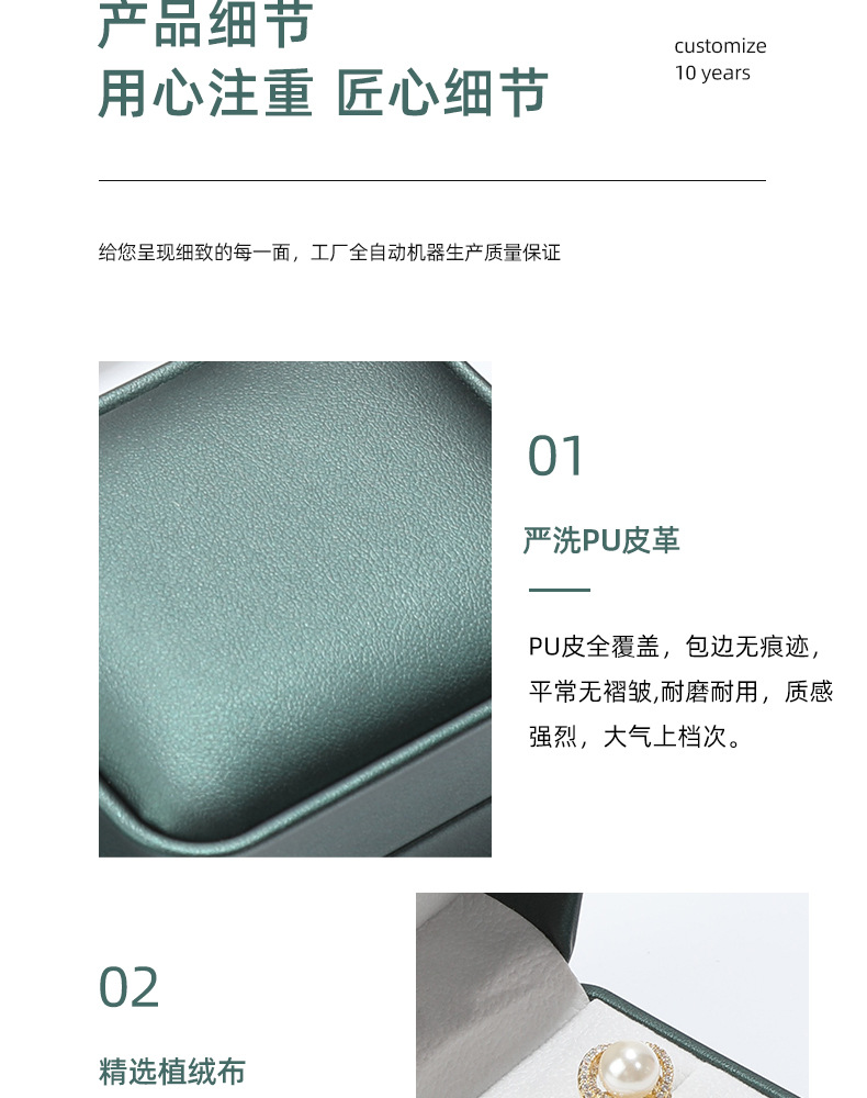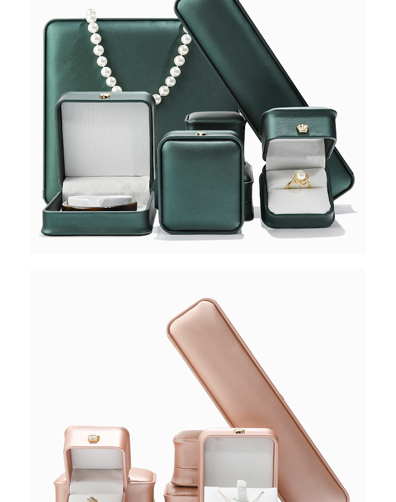 dark green pearl box; crown pu leather jewelry box