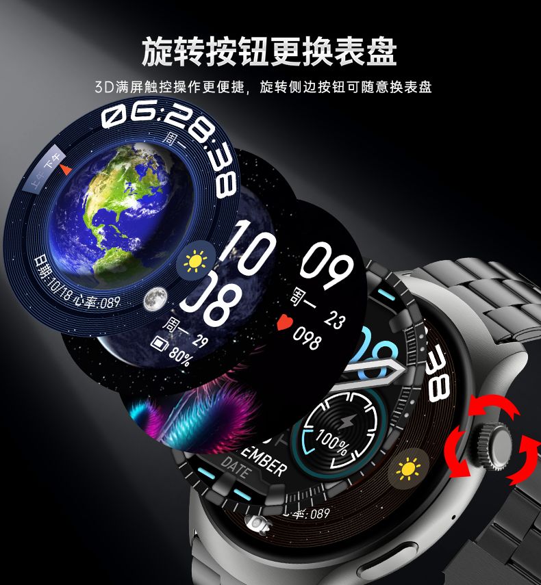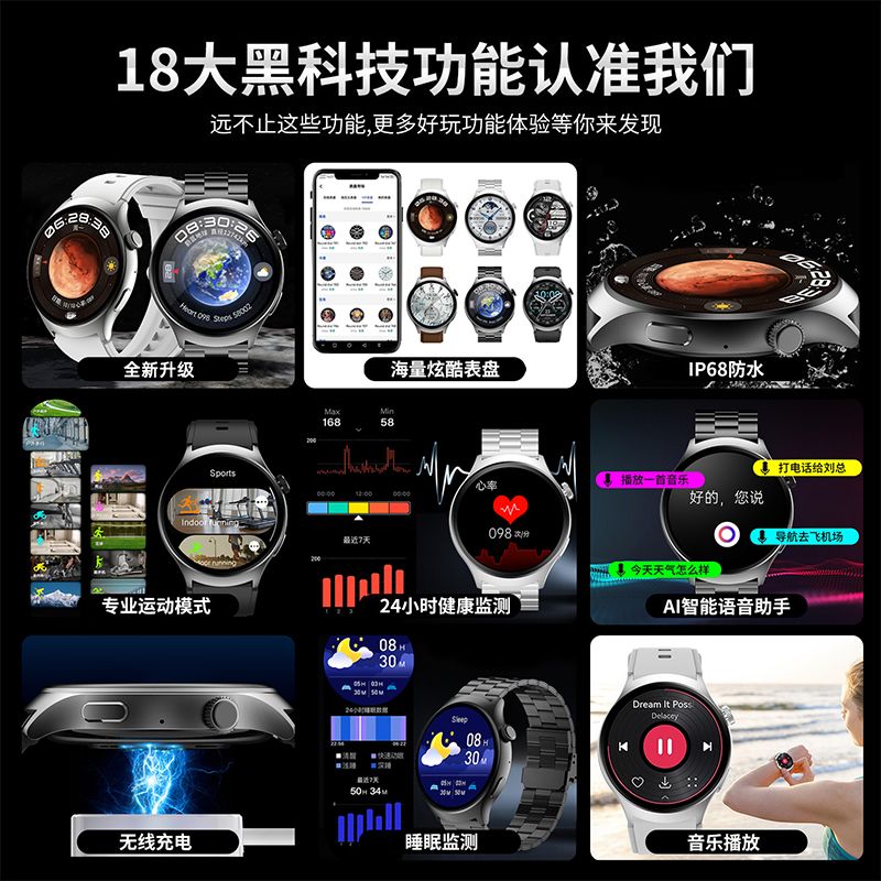 | package 1 [watch + black steel belt + black silicone band + magnetic charger]] | CN¥ 218.5 | 99999 piece available |